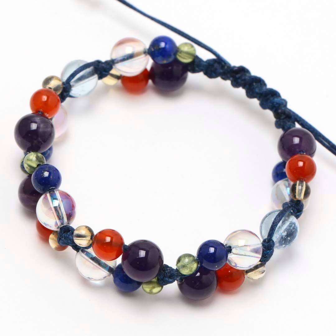 【限定1本】七色玉趣天珠編みブレスレット_魔除け・無病息災へと導く