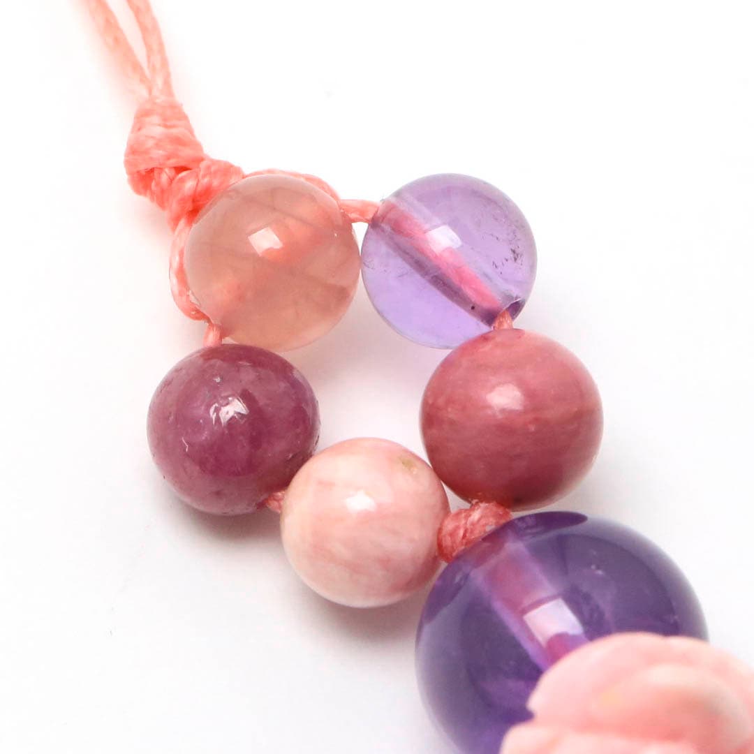 ▼使用されている石:ロードクロサイト / ラベンダーアメジスト / ルビー / ディープスターローズクォーツ / ピーモンタイト・シスト / ルビー