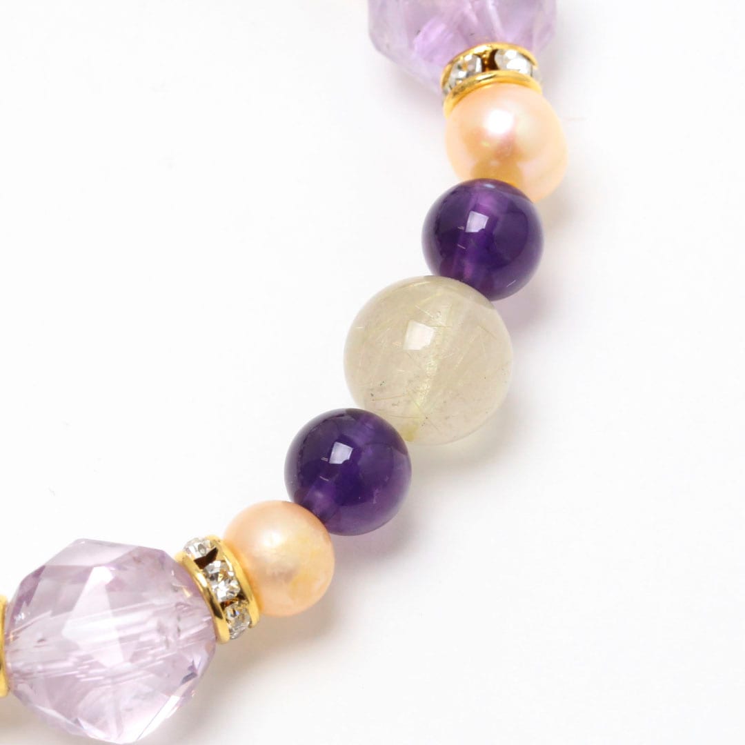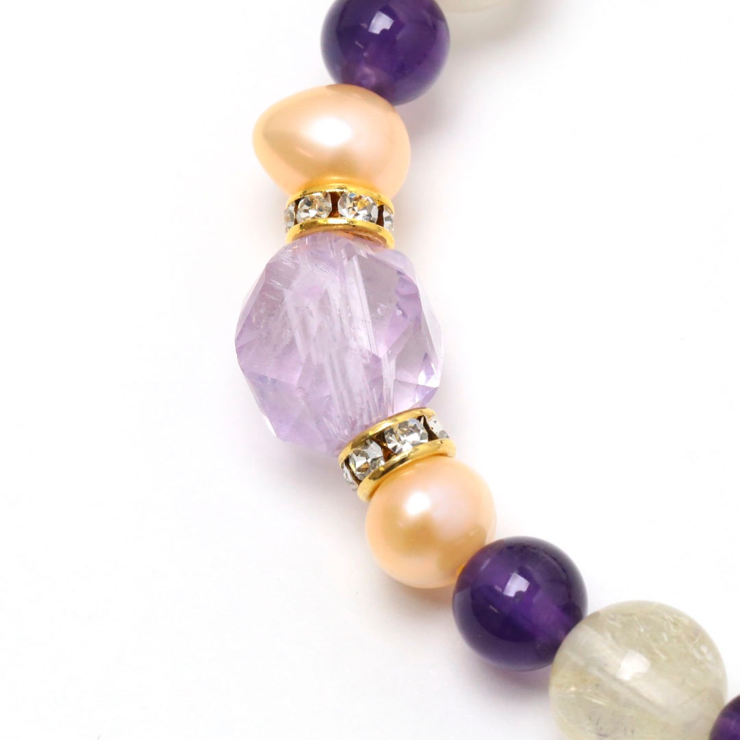 ▼使用されている石:ラベンダーアメジスト / 淡水パール / ルチルクォーツ / アメジスト