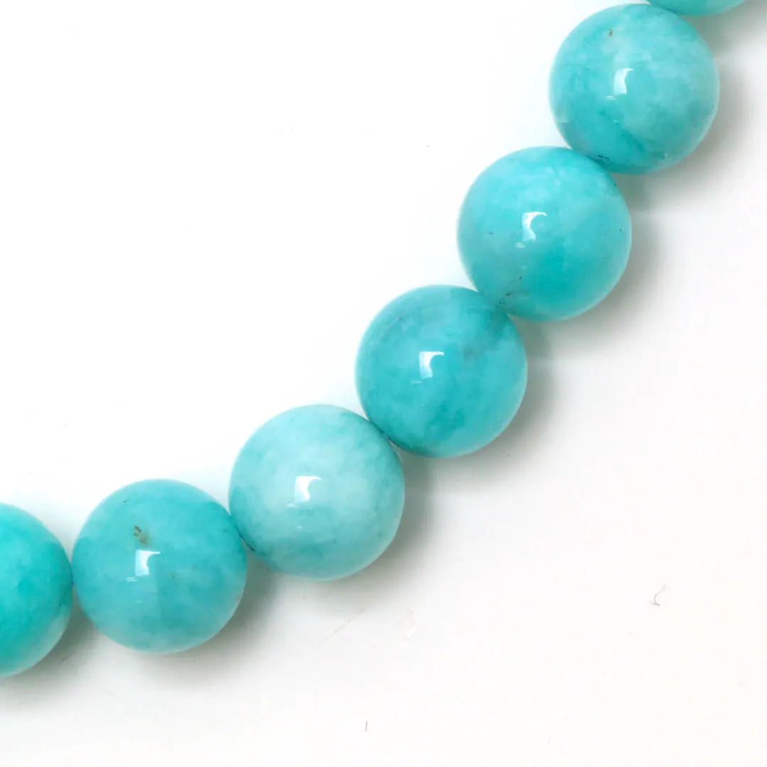 澄んだブルーグリーンに、やわらかな白の霜降り模様。アマゾナイトの爽やかさに、どこか温もりを感じる石となっております。