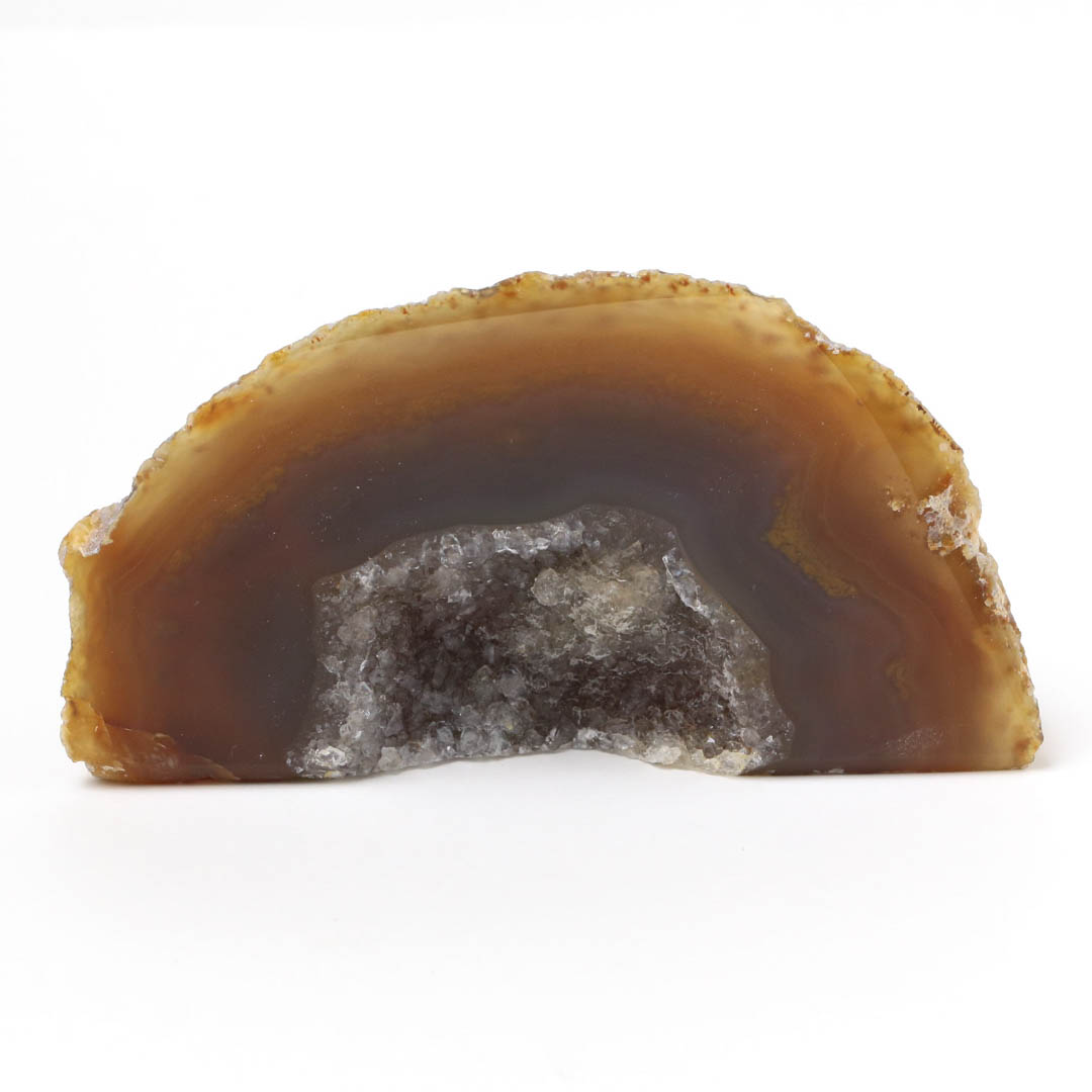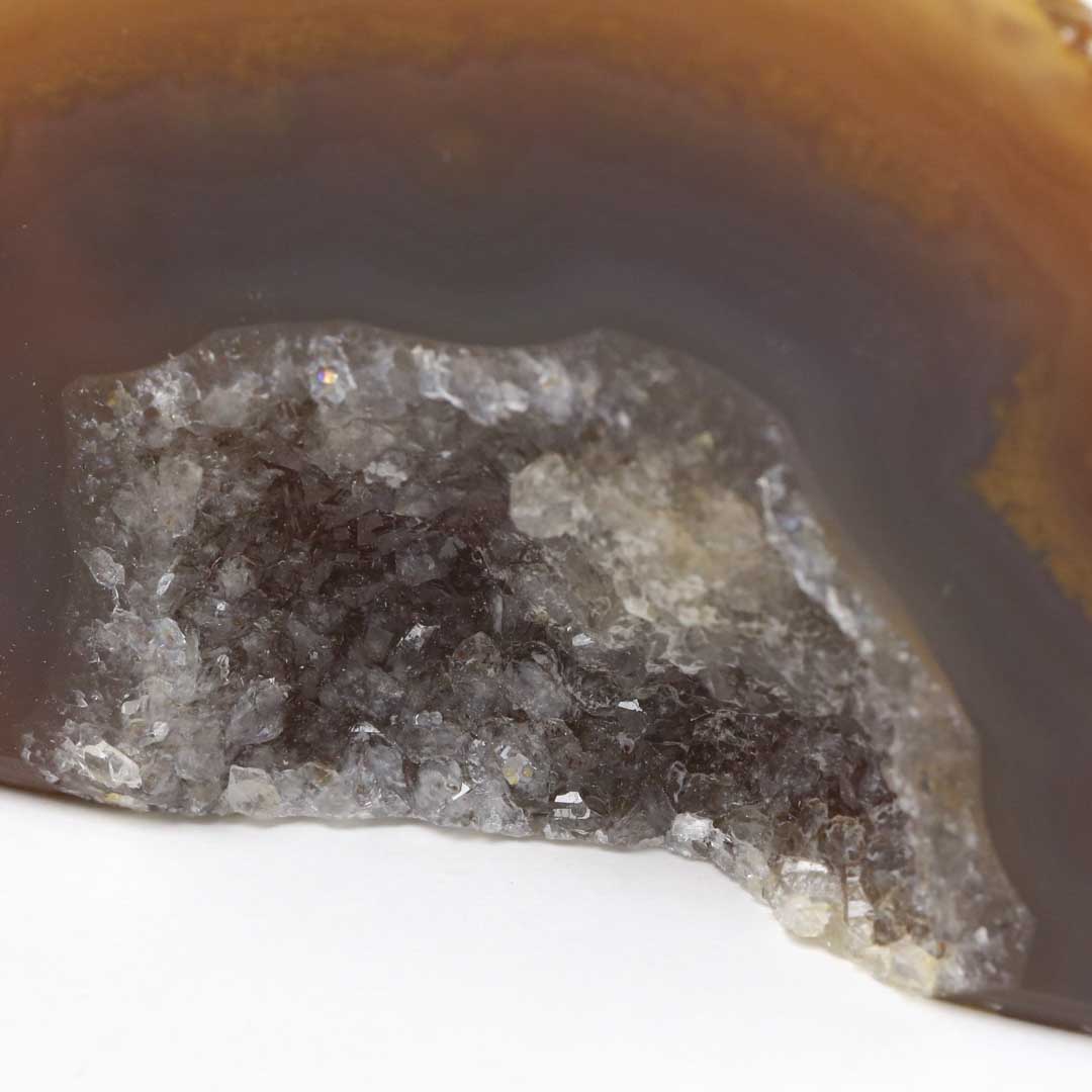 また、めのうは石英の結晶が非常に細かく集まっており、内側に空洞ができると、その空洞内で水晶が結晶することがあり、まさにその成り立ちの様子が見て取れますね*