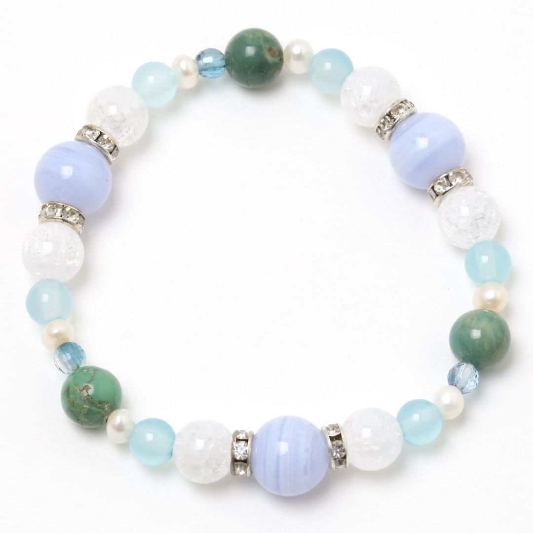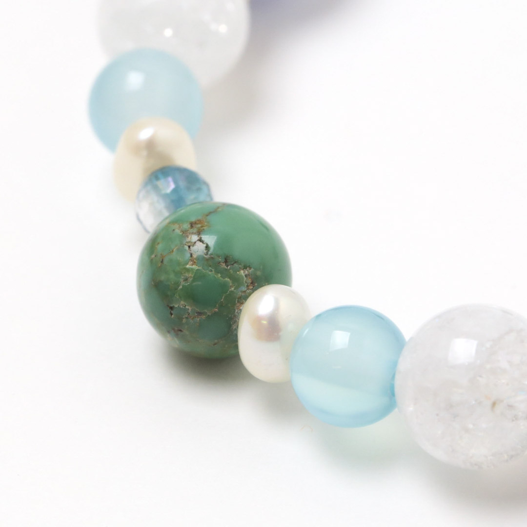 ▼使用されている石:シーブルーカルセドニー / クラッククォーツ / アクアオーラ / ターコイズ / 淡水パール