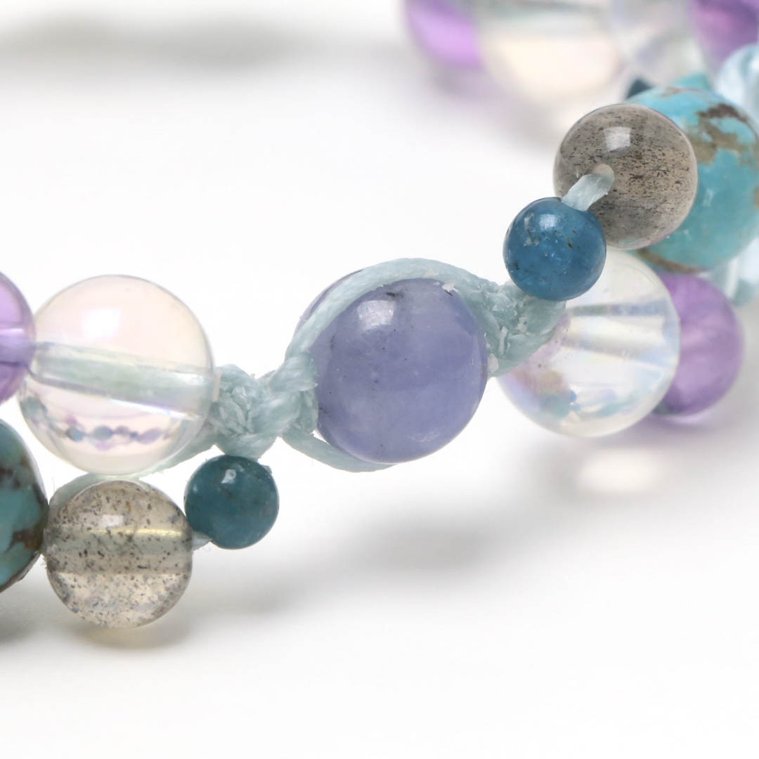 ▼使用されている石:タンザナイト / ターコイズ / ラブラドライト / ラベンダーアメジスト / アパタイト / ブルートパーズ / オーロラクォーツ / 水晶