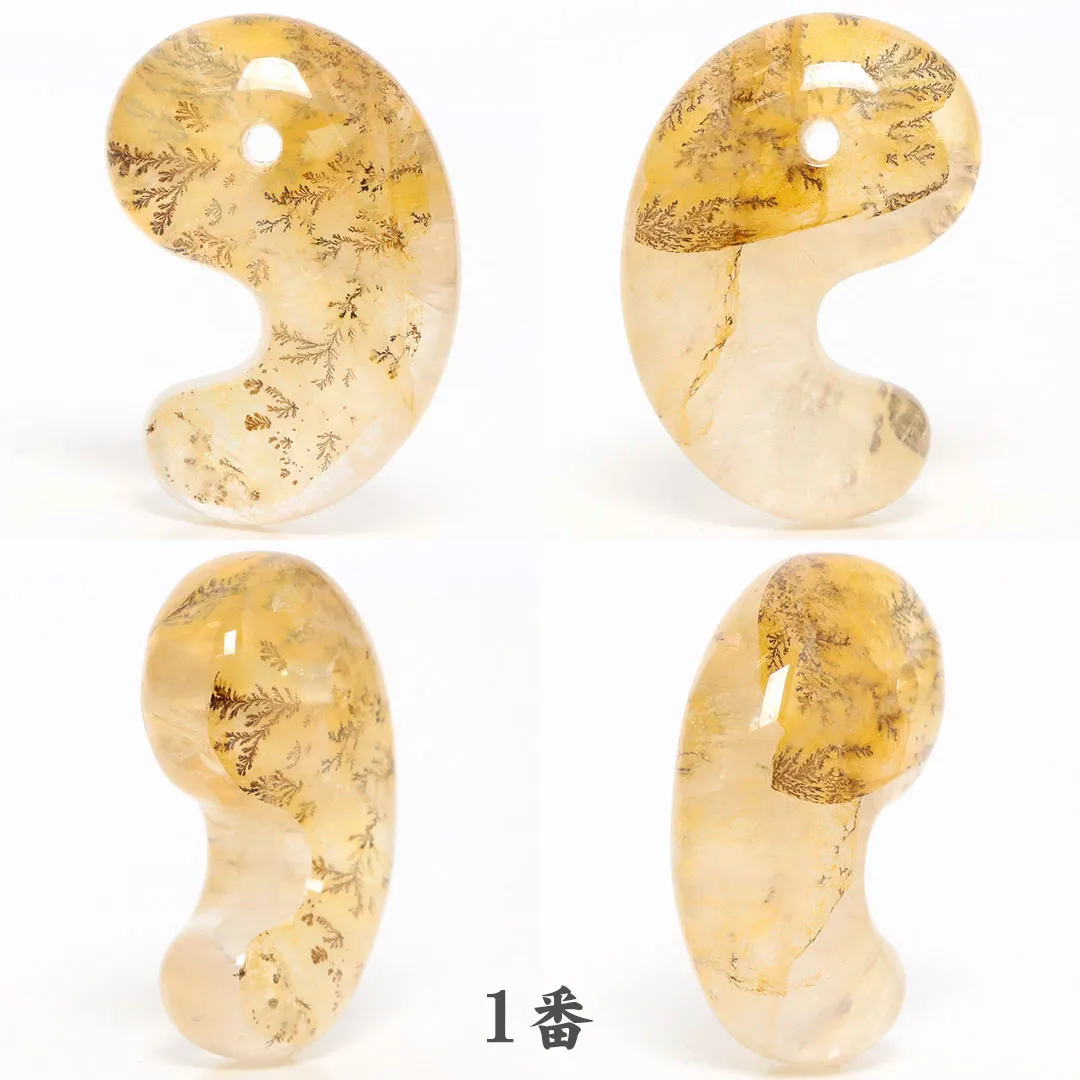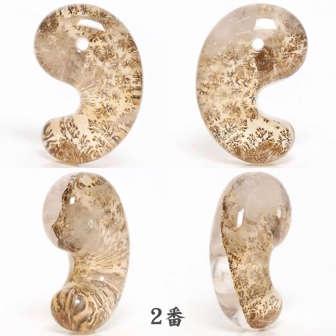 2番のデンドリチッククォーツは勾玉の上部付近に白いモヤのようなインクルージョンがあるためHCになっております。