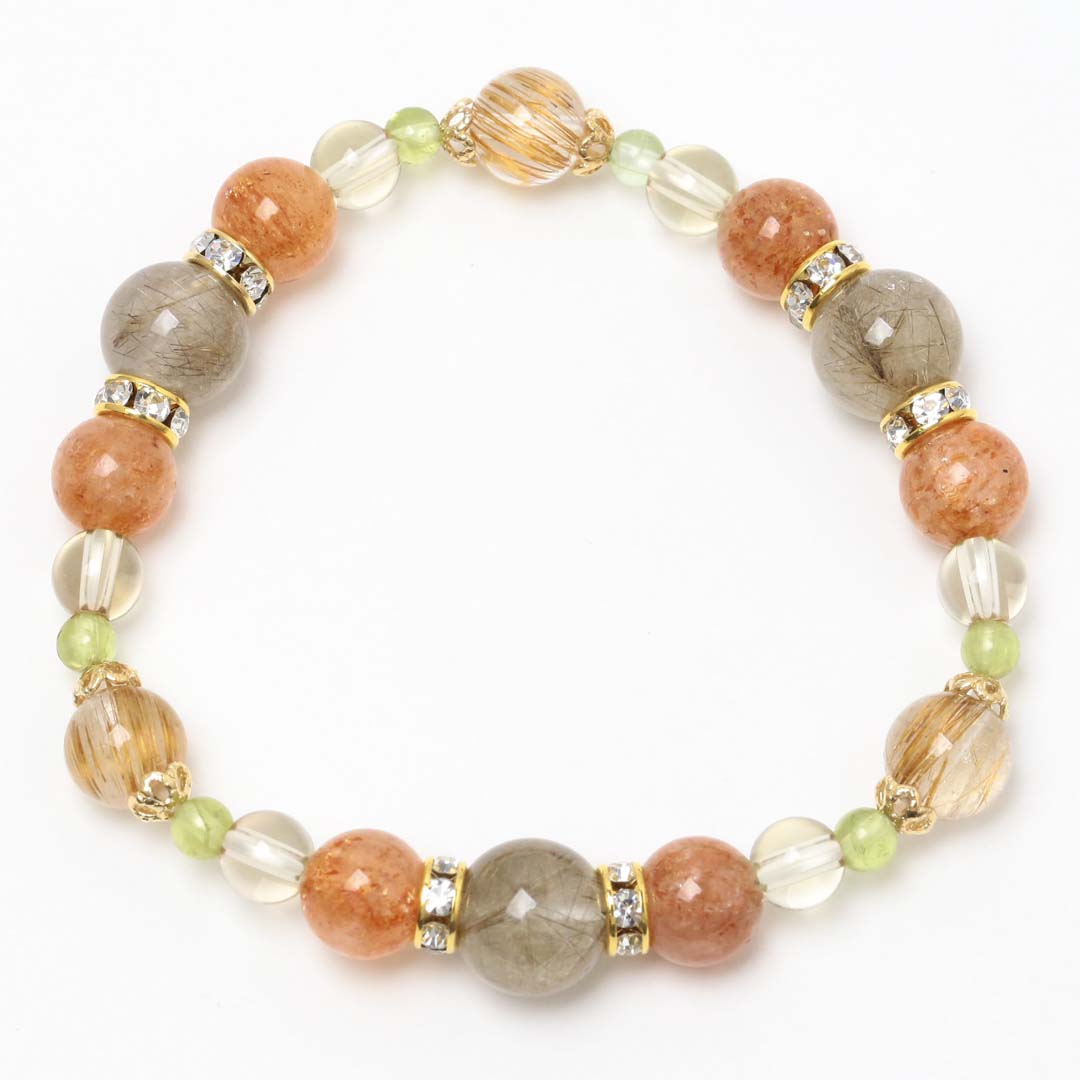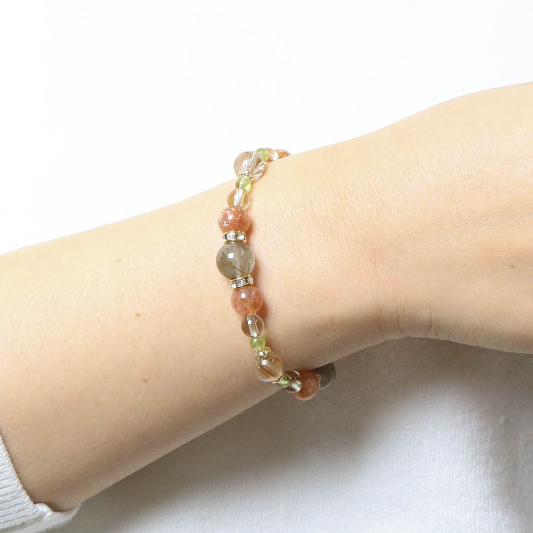 ▼使用されている石:シルバーブロンズルチルクォーツ / サンストーン / ブロンズルチルクォーツ / レモンクォーツ / ペリドット