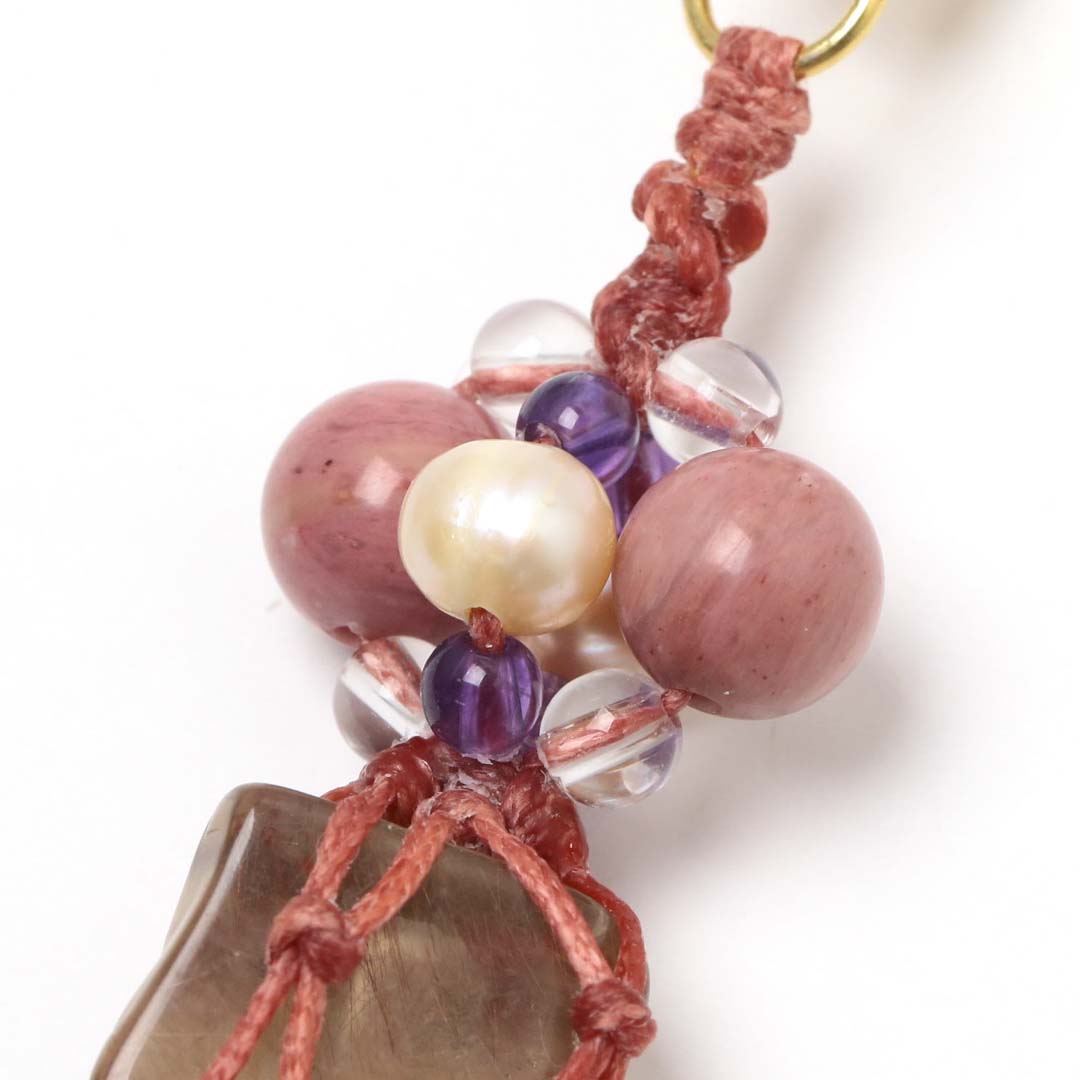 ▼使用されている石:タイガールチルクォーツ / ピーモンタイト・シスト / 淡水パール / 水晶 / ラベンダーアメジスト