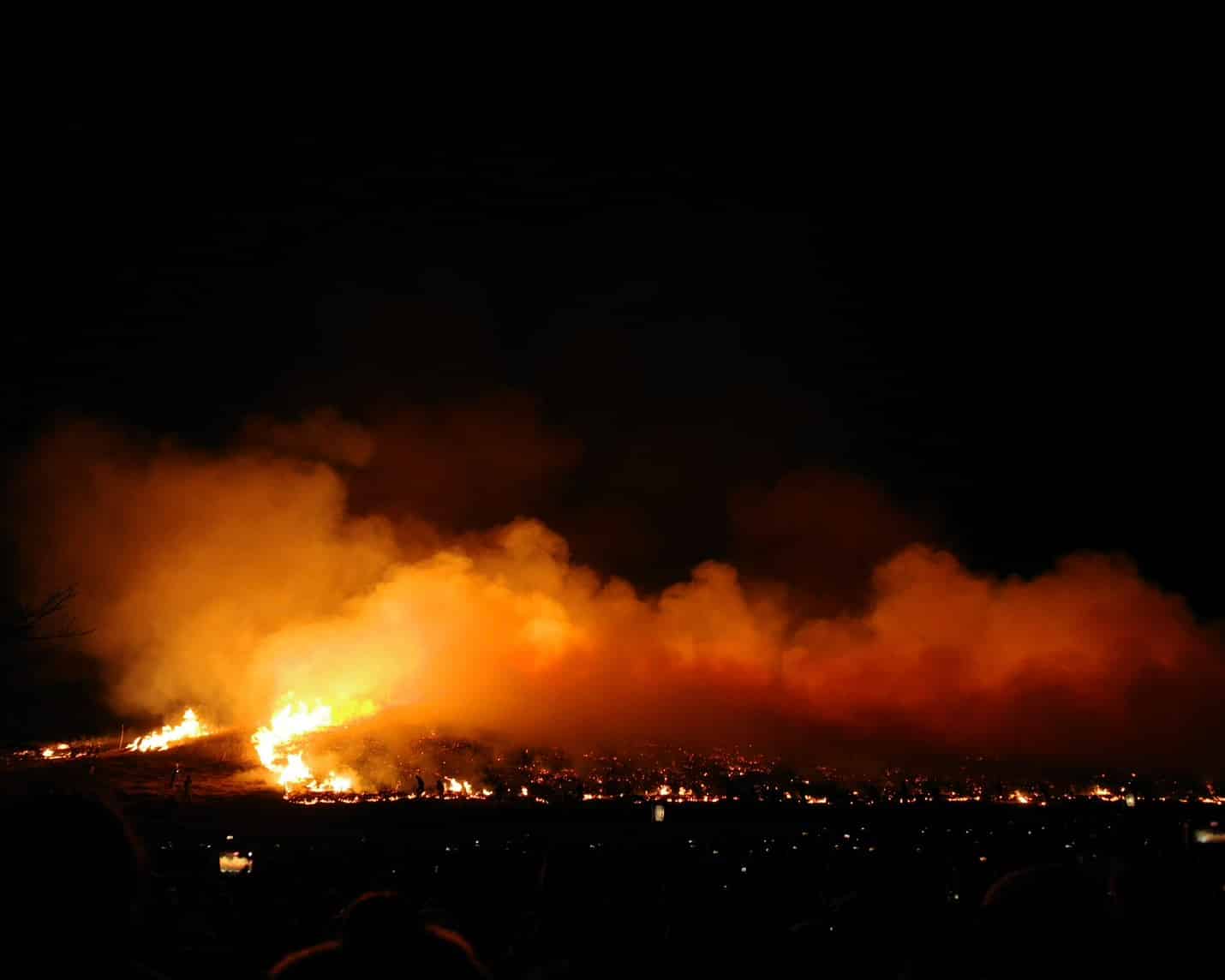 煙の流れのせいか、山頂まで燃え広がる様子ははっきりとは見えませんでしたが、
