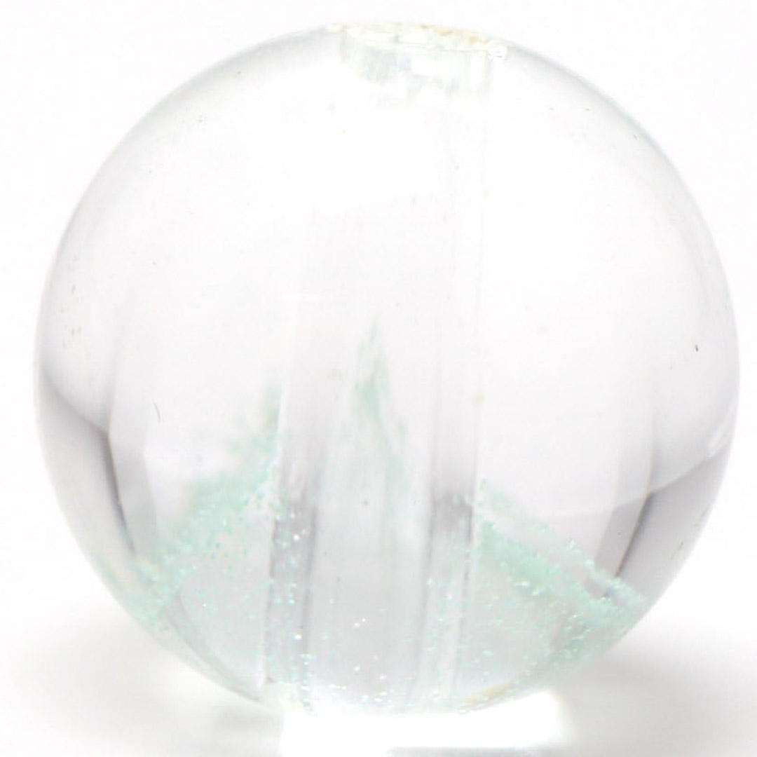 透明な水晶の中に淡い緑色のセラドナイトが内包された希少な天然石。