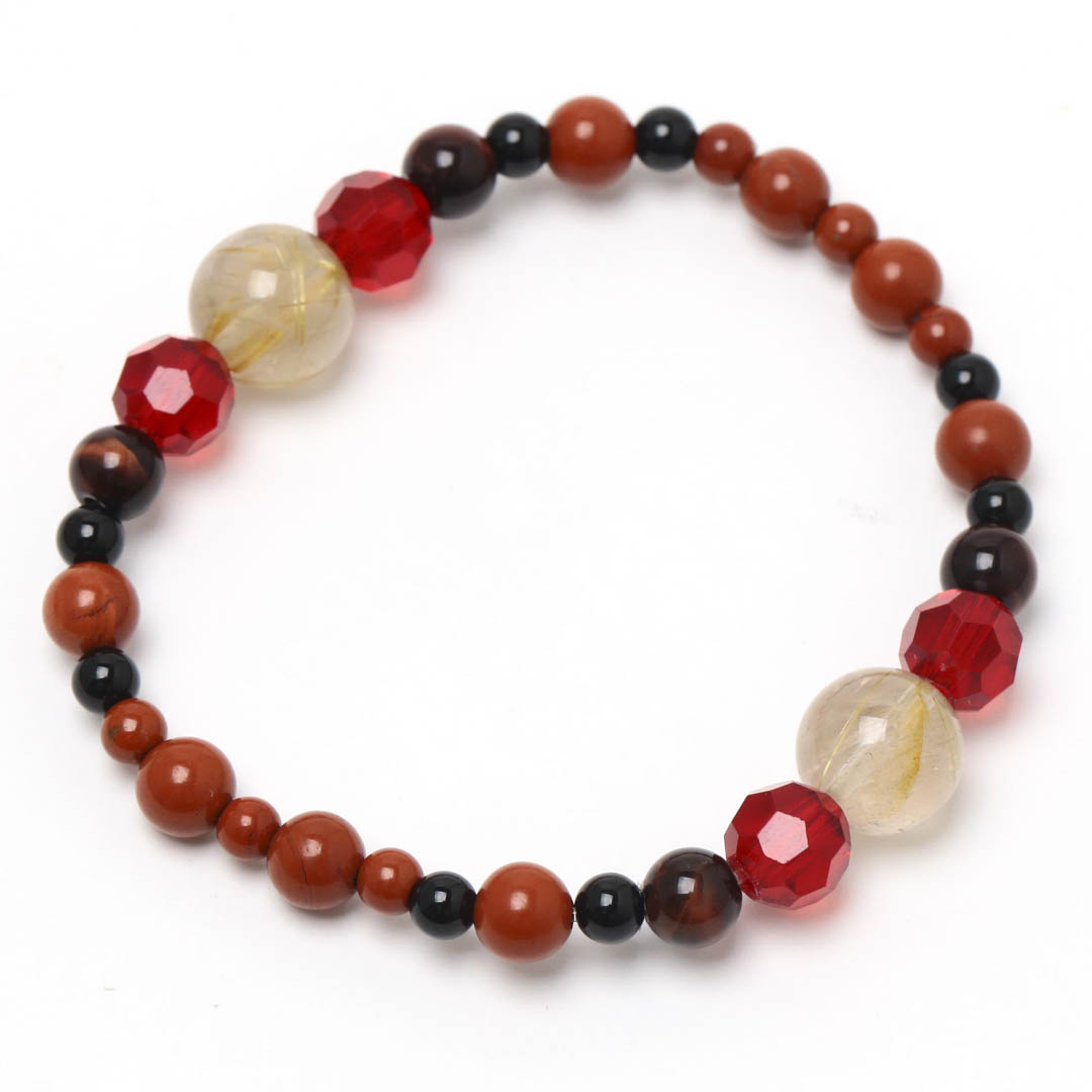 情熱的な赤が印象的なレッドタイガーアイとレッドジャスパーに、オニキスの黒を効かせたブレスレット。