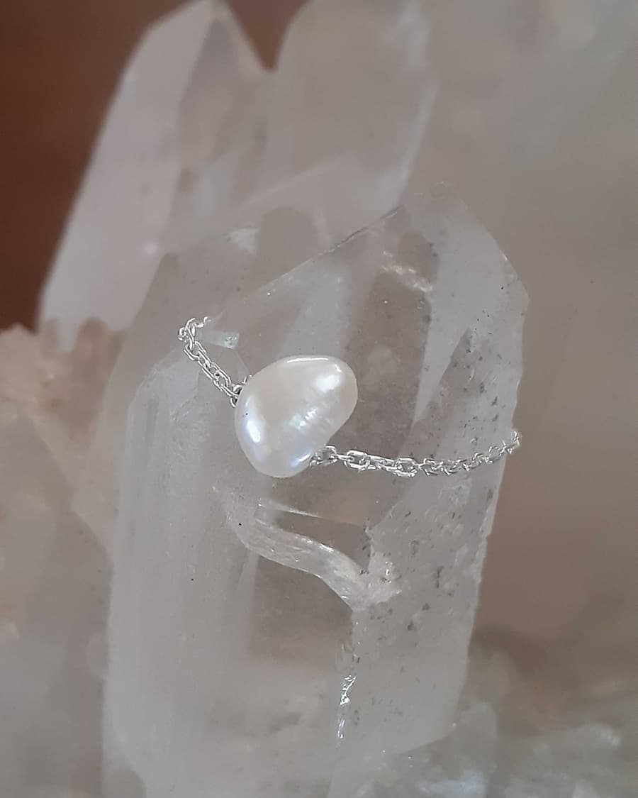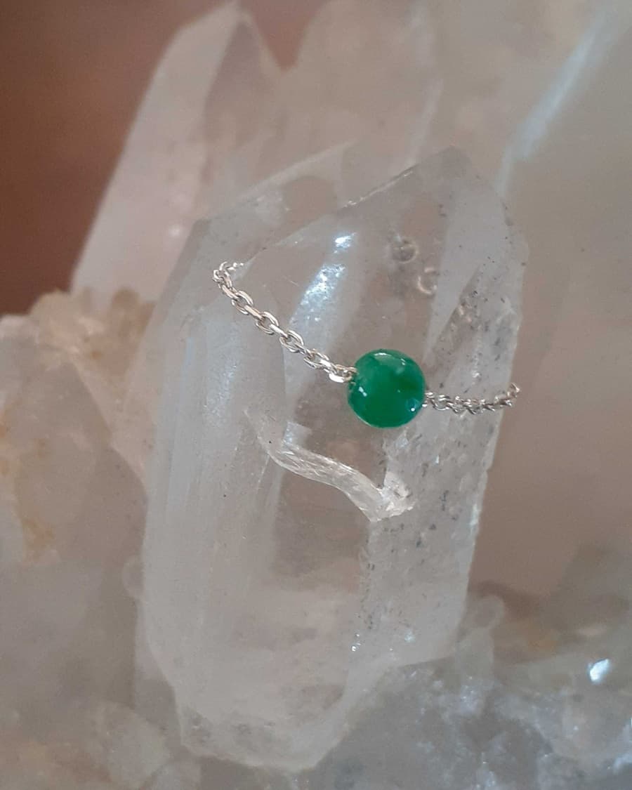 アゼツライト、淡水パール、翡翠をそれぞれにチェーンに通して指輪にしました。
