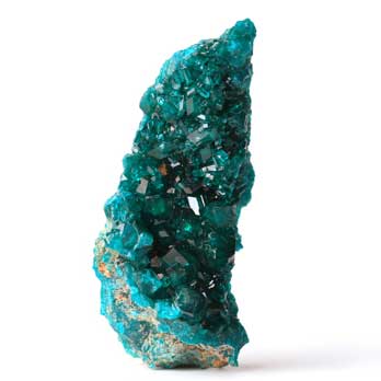 色は緑色や帯青緑色で、半透明ないし透明のため、最初発見された時はエメラルドと間違われました。乾燥地域の銅の酸化帯に産出します。