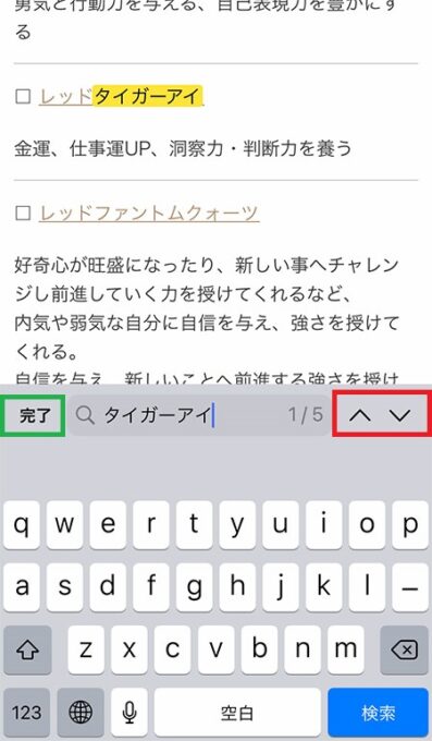 入力すると一致するキーワードの箇所に移動し、ハイライトされます。