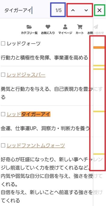 入力したキーワードの総数と対応番号が表記(下画像の□)