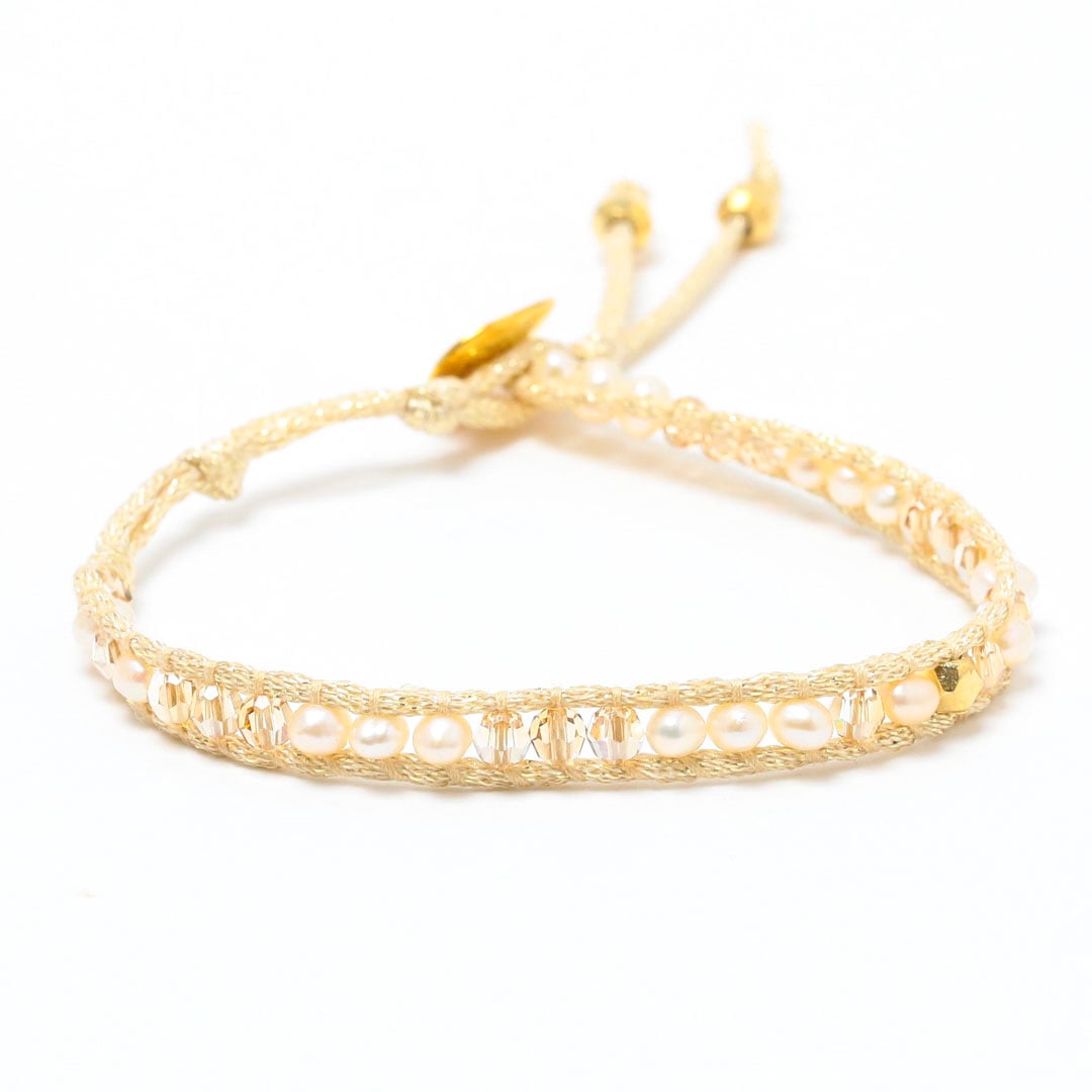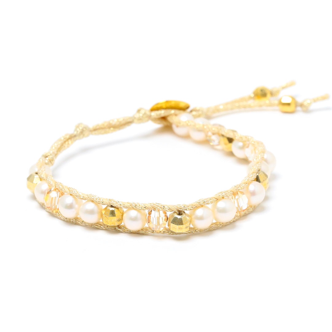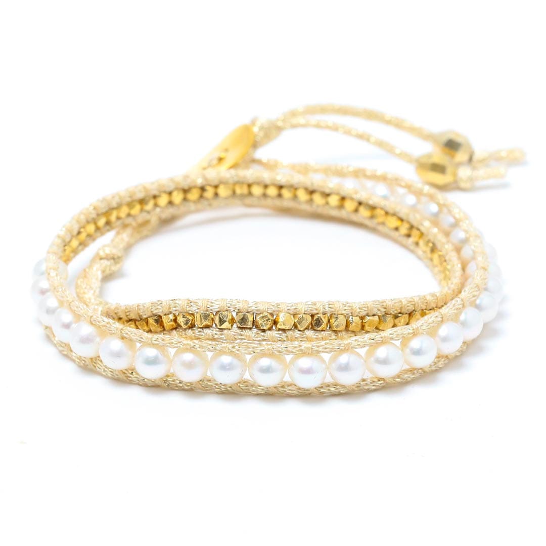 パールストーンミックス コードラップ3連ブレスレット_5169