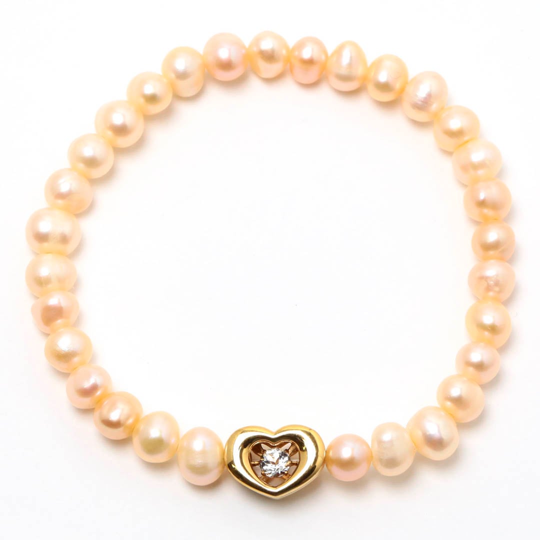 【限定1本】ダンシングストーン パール6mmゴムブレスレット_ハート