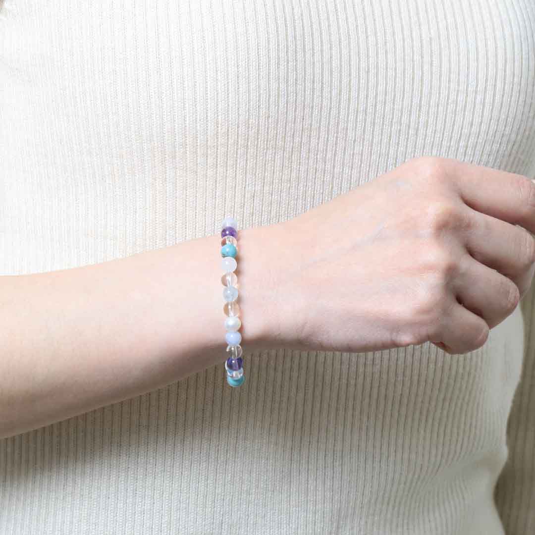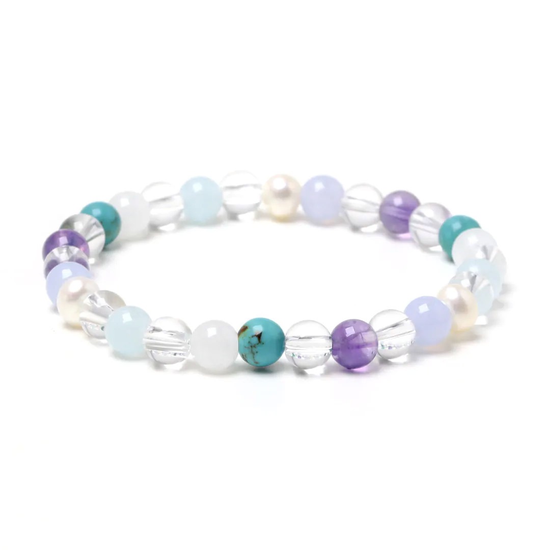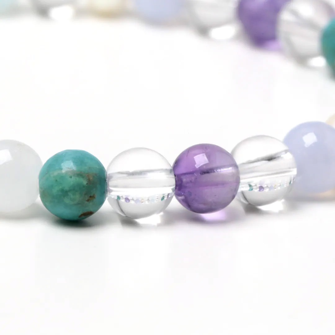 ▼使用されている石:水晶 / アクアマリン / ターコイズ / ブルーレース / スノークォーツ / ラベンダーアメジスト / 淡水パール