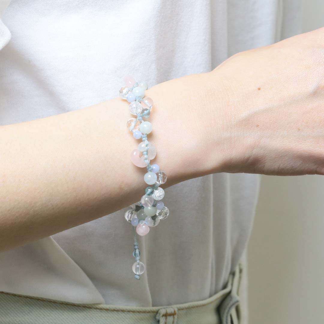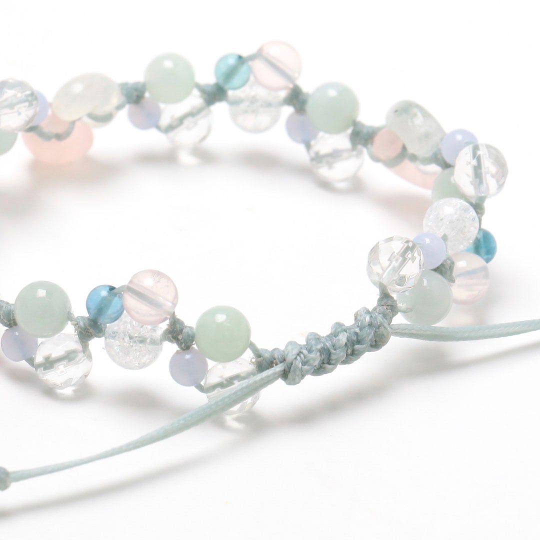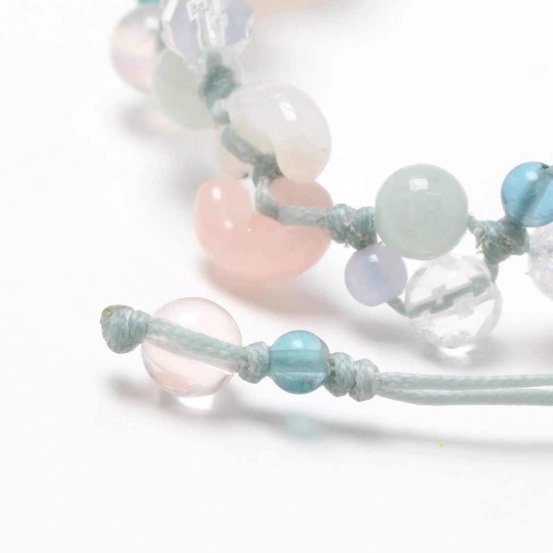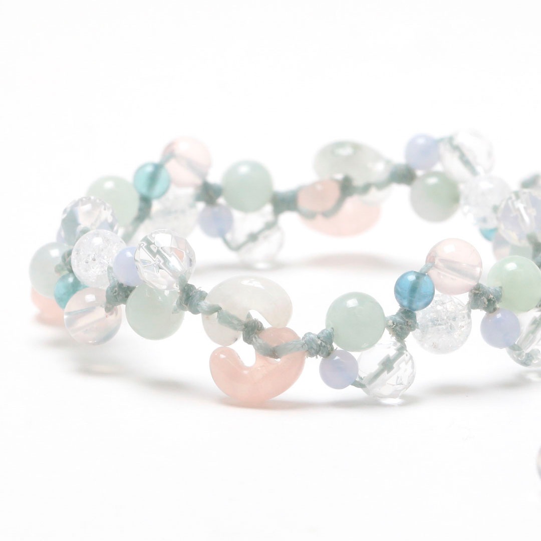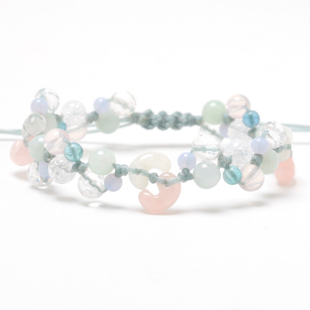 ▼使用されている石:レインボームーンストーン / ローズクォーツ / ブルーレース / ジェダイト (翡翠) / 水晶 / マダガスカルローズクォーツ