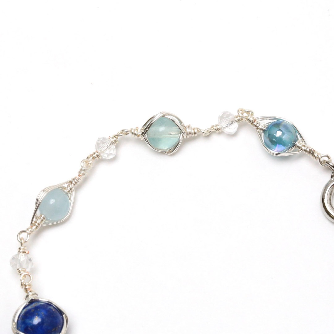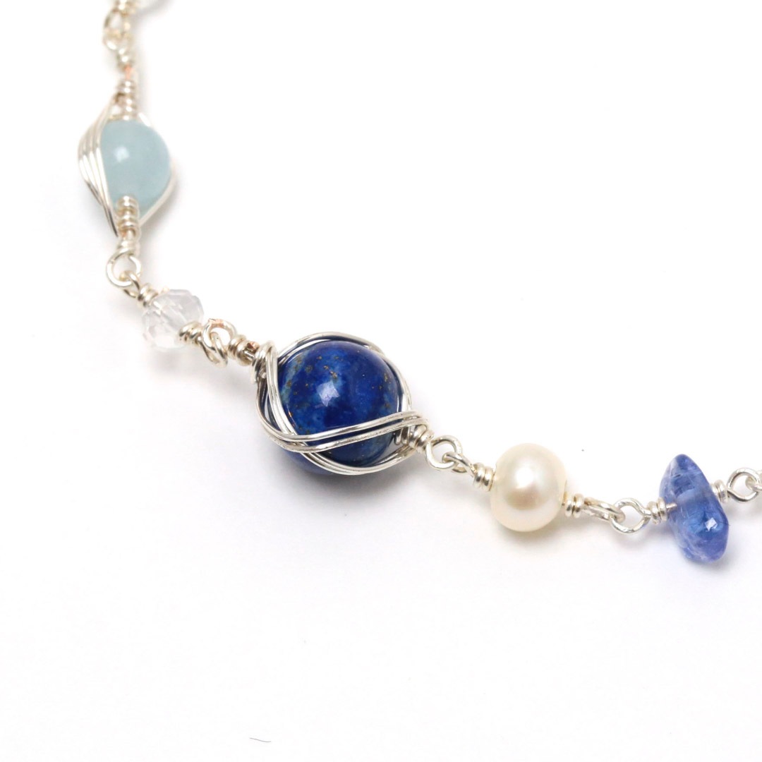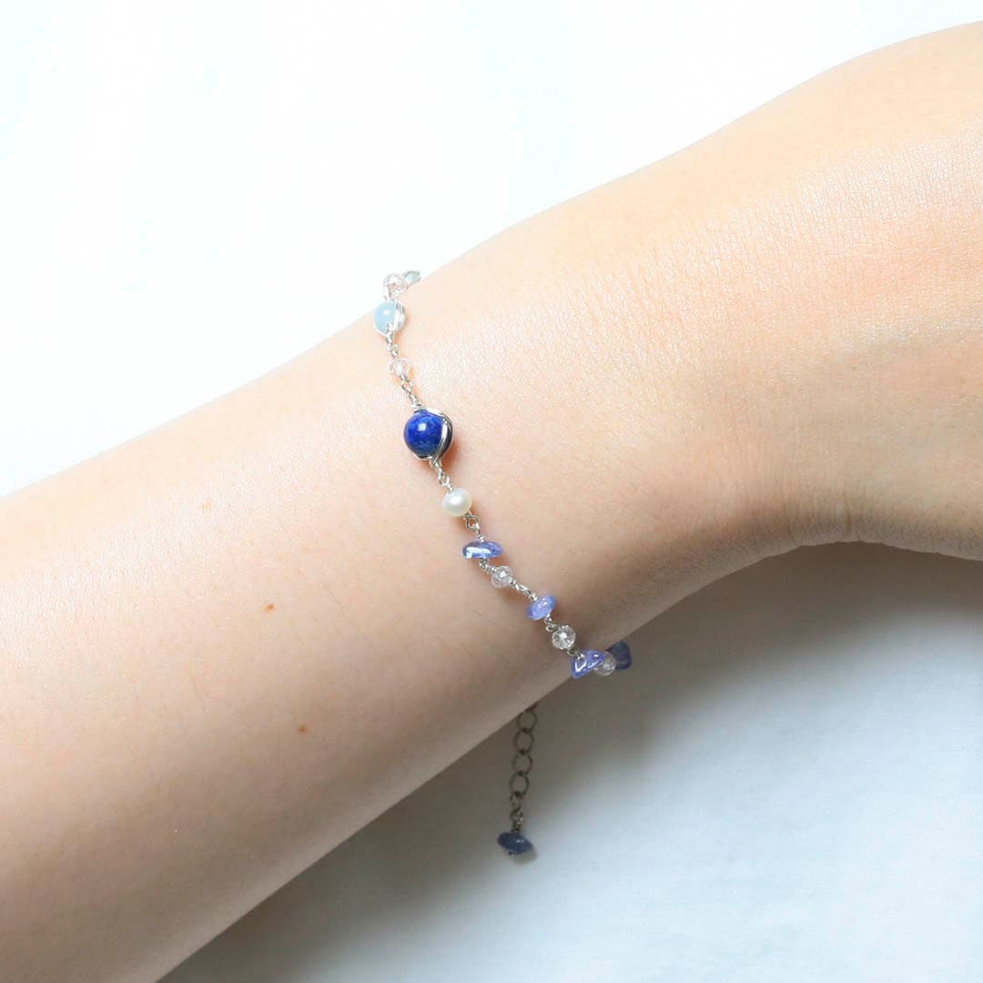 ▼使用されている石:タンザナイト / ラピスラズリ / アクアマリン / フローライト / アクアオーラ / 淡水パール / 水晶