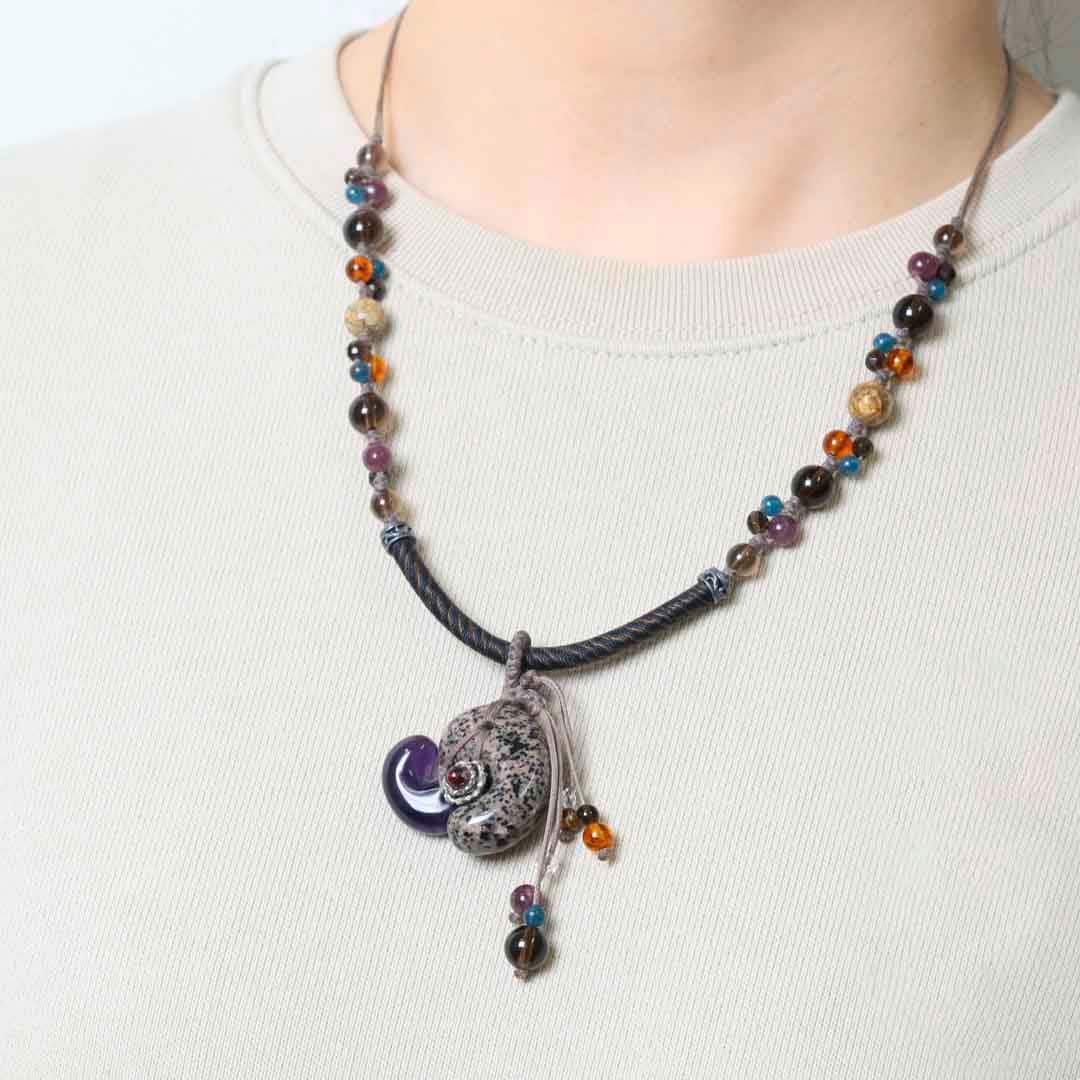 ▼使用されている石:水晶 / アンバー(琥珀) / ガーネット / アパタイト / スモーキークォーツ / アメジスト / ピクチャージャスパー / レピドライト / ユーパーライト