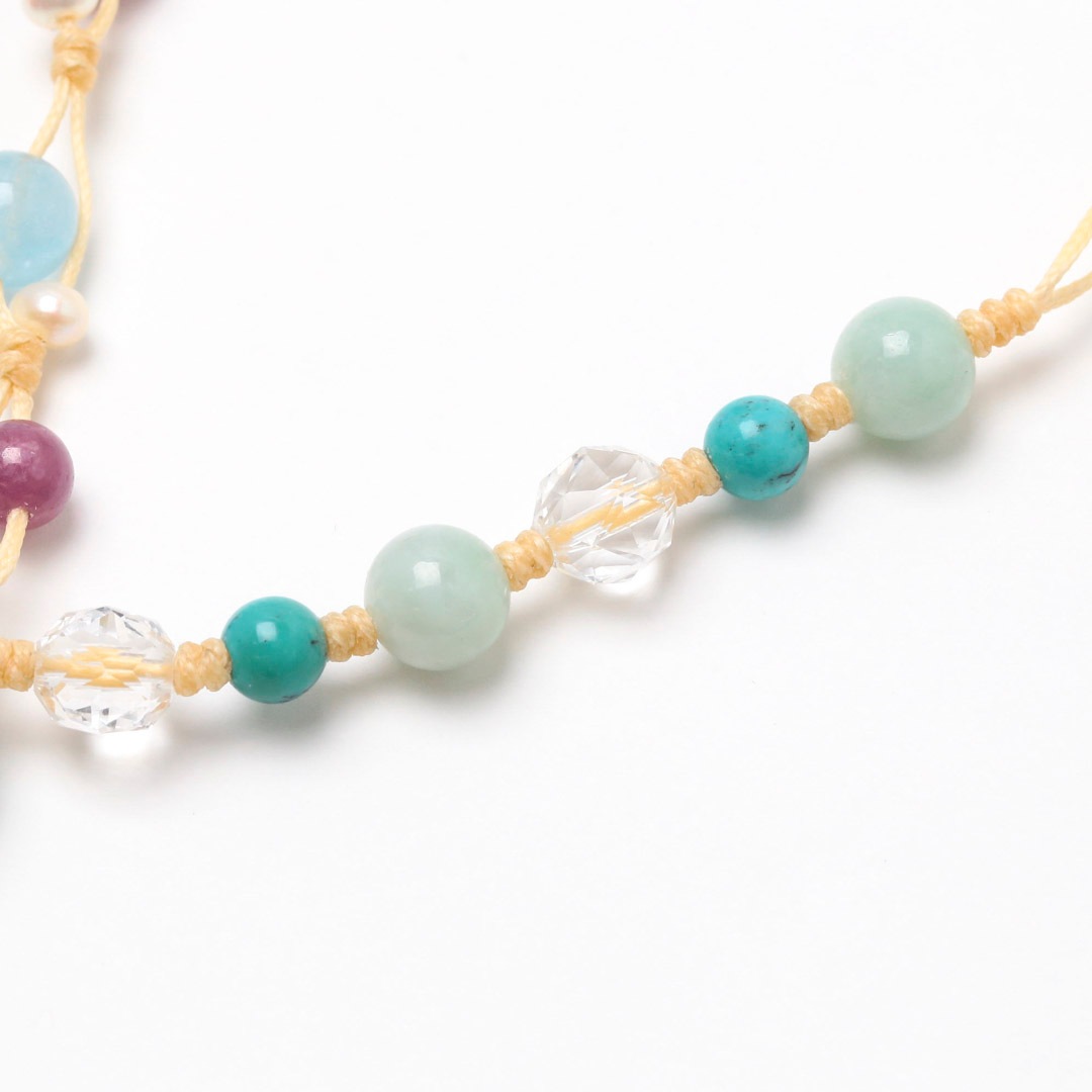 ▼使用されている石:フローライト / 水晶 / ジェダイト (翡翠) / ターコイズ / ルビー / 淡水パール / アクアマリン / クォーツァイト