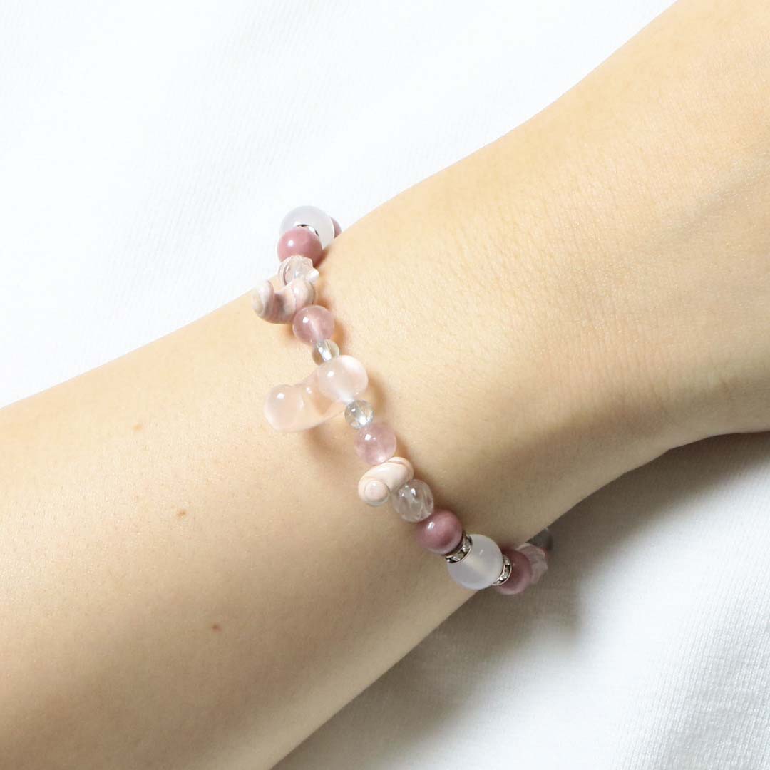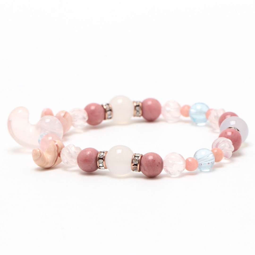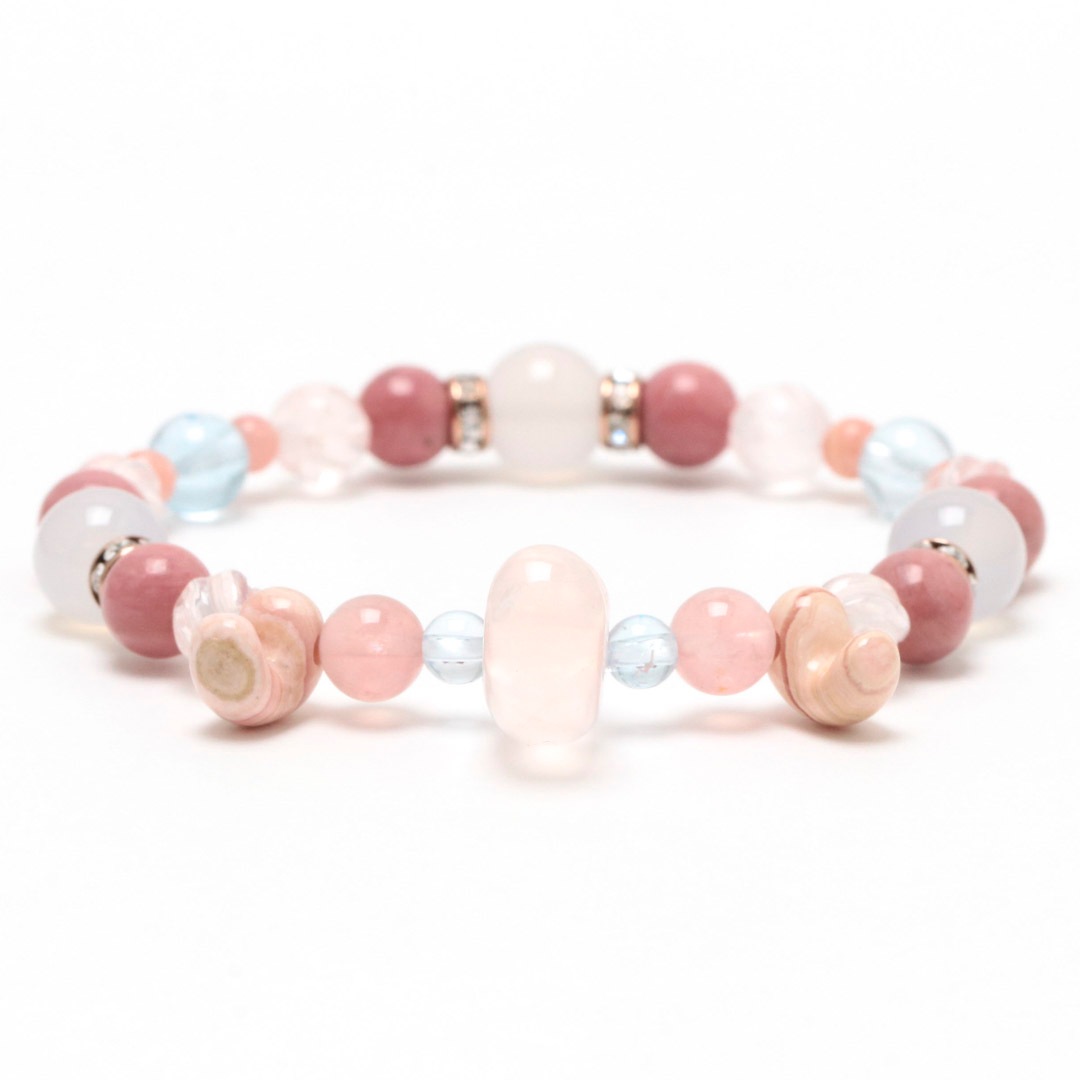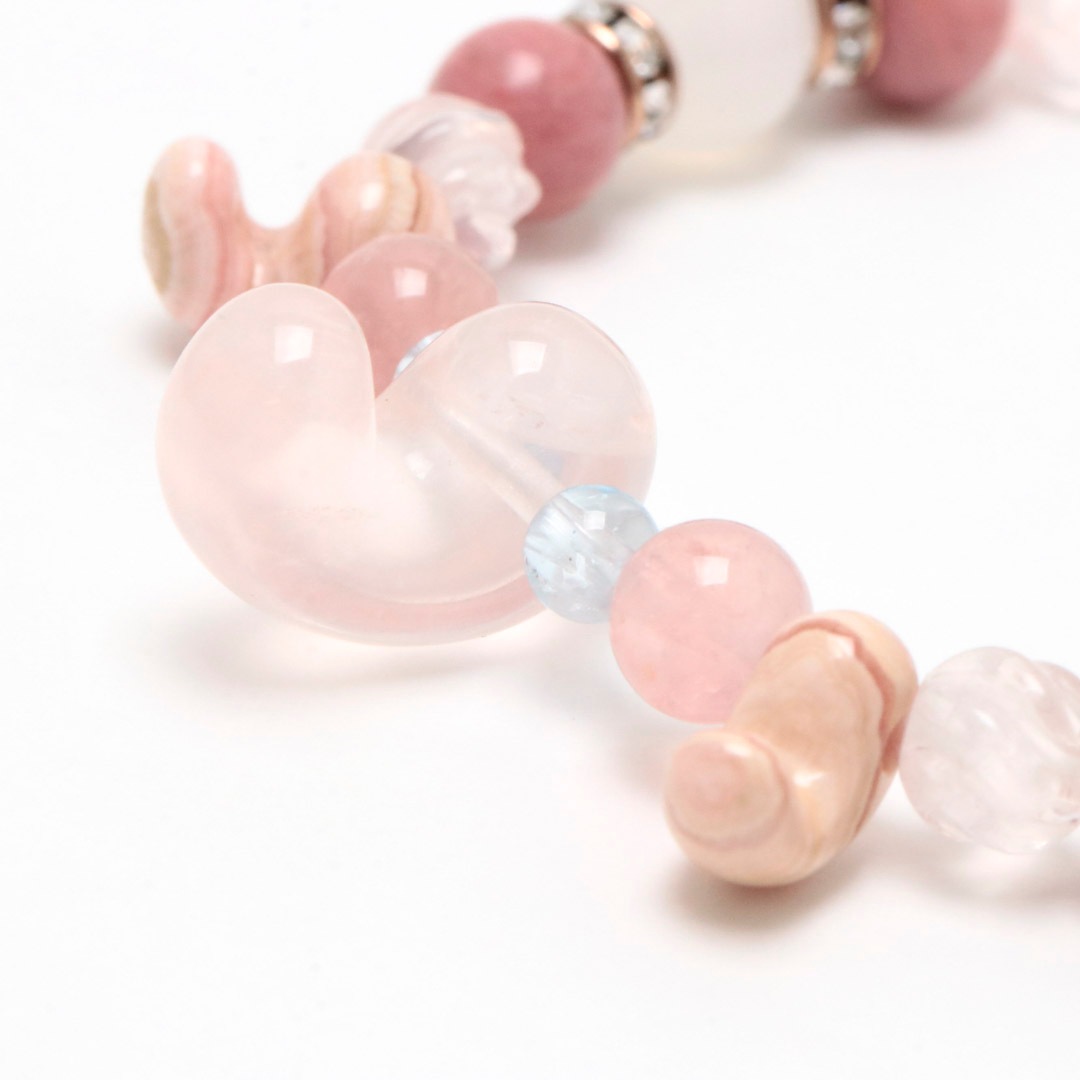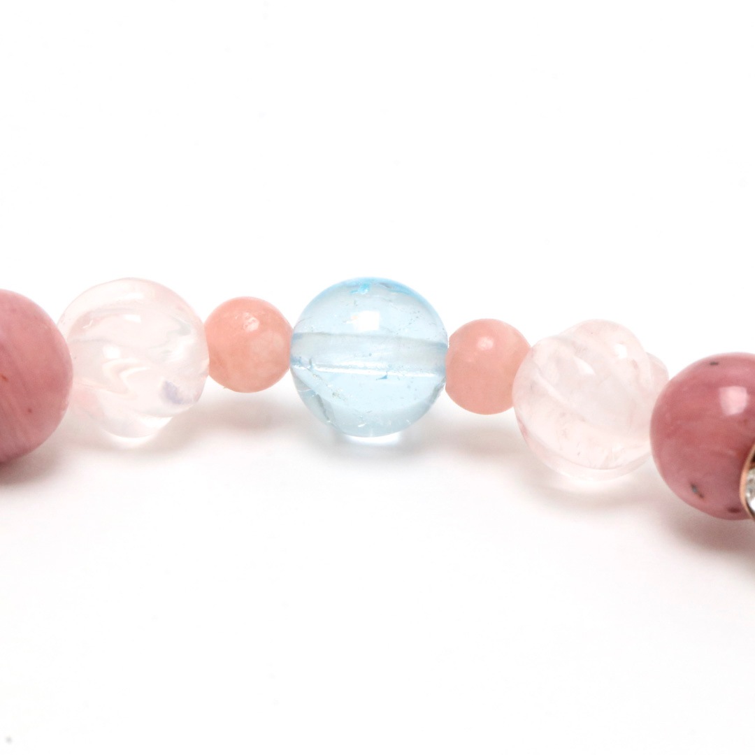 ▼使用されている石:ローズクォーツ / ロードクロサイト / 白めのう / ブルートパーズ / ディープスターローズクォーツ / マダガスカルローズクォーツ / ピーモンタイト・シスト