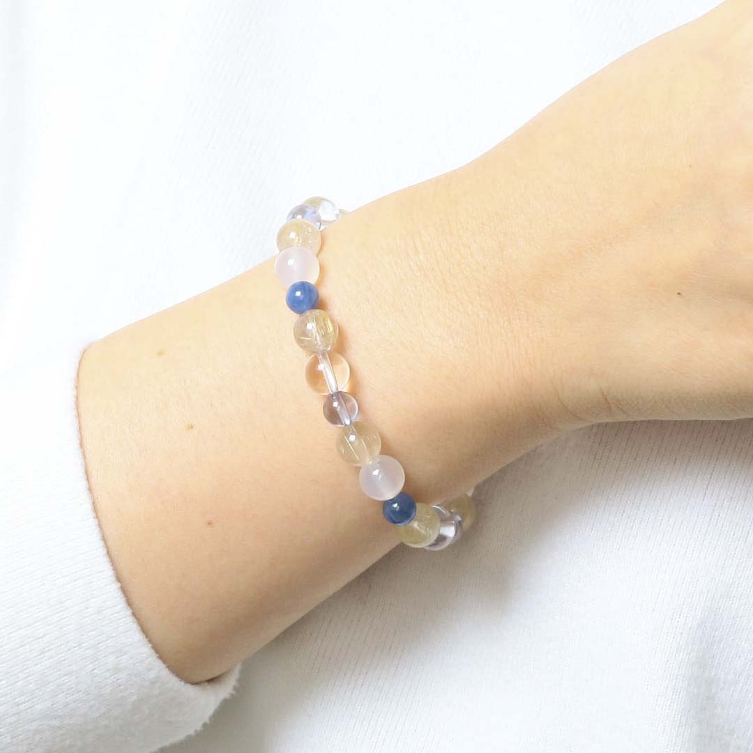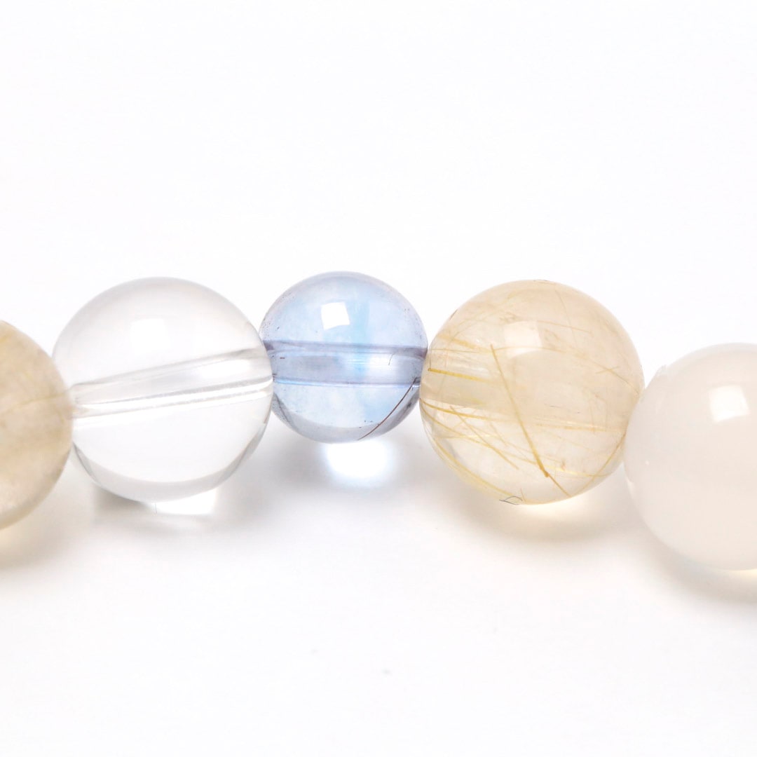 ▼使用されている石:水晶 / 白めのう / ルチルクォーツ / カイヤナイト / コスモオーラ