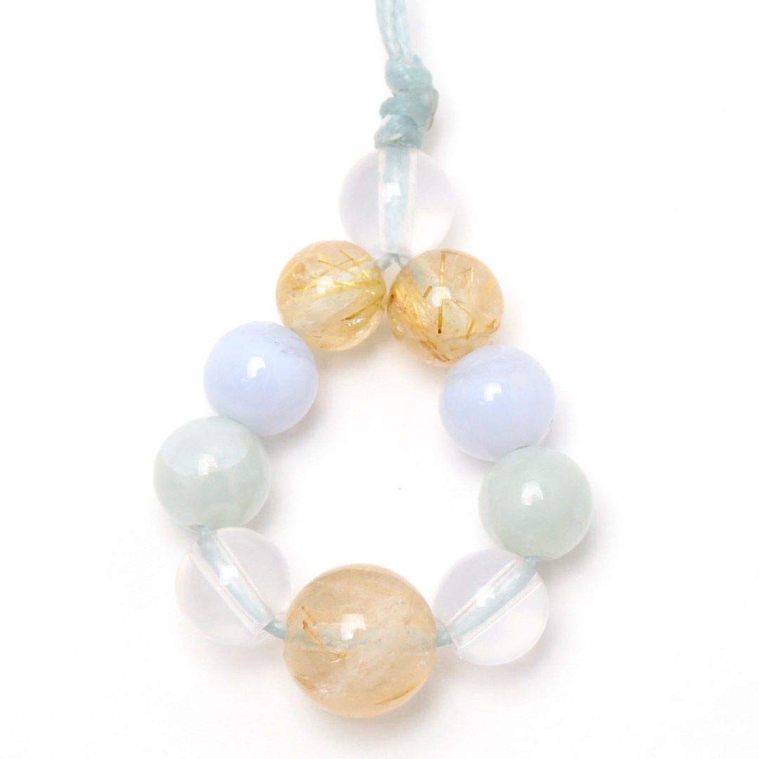 ▼使用されている石:ルチルクォーツ / ジェダイト (翡翠) / ブルーレース / ミルキークォーツ