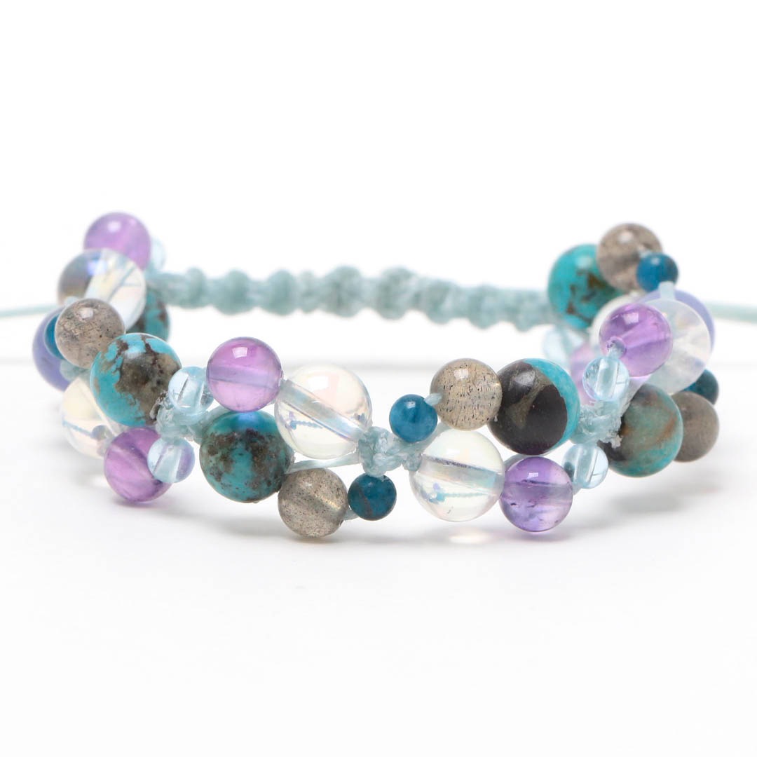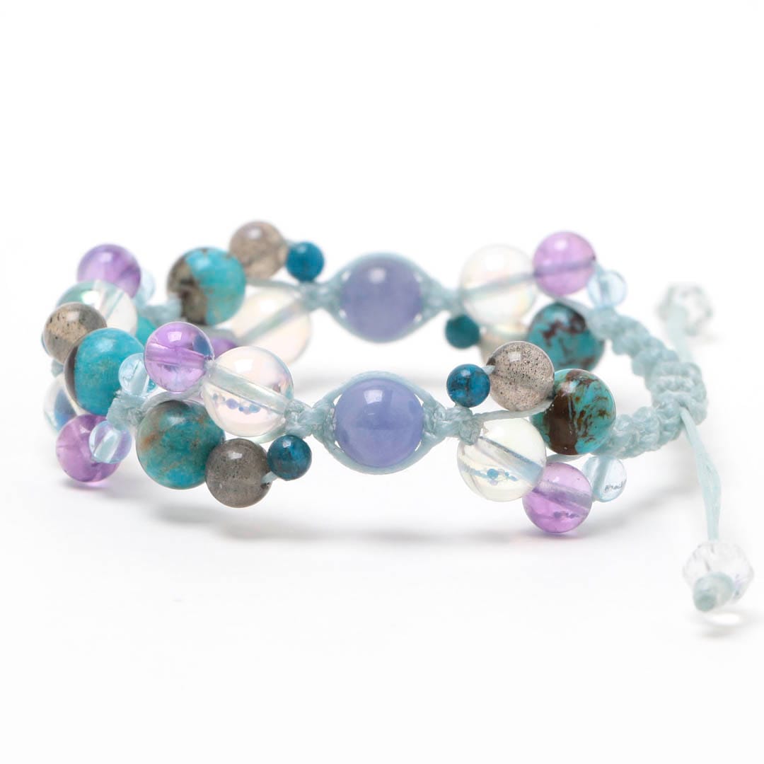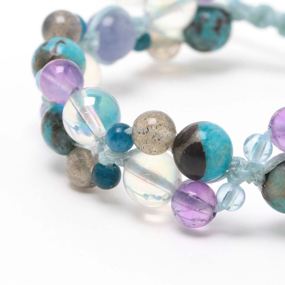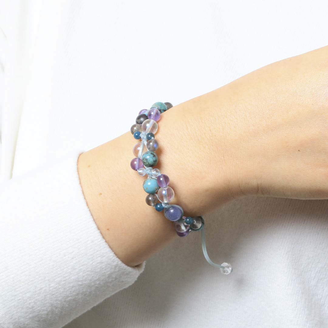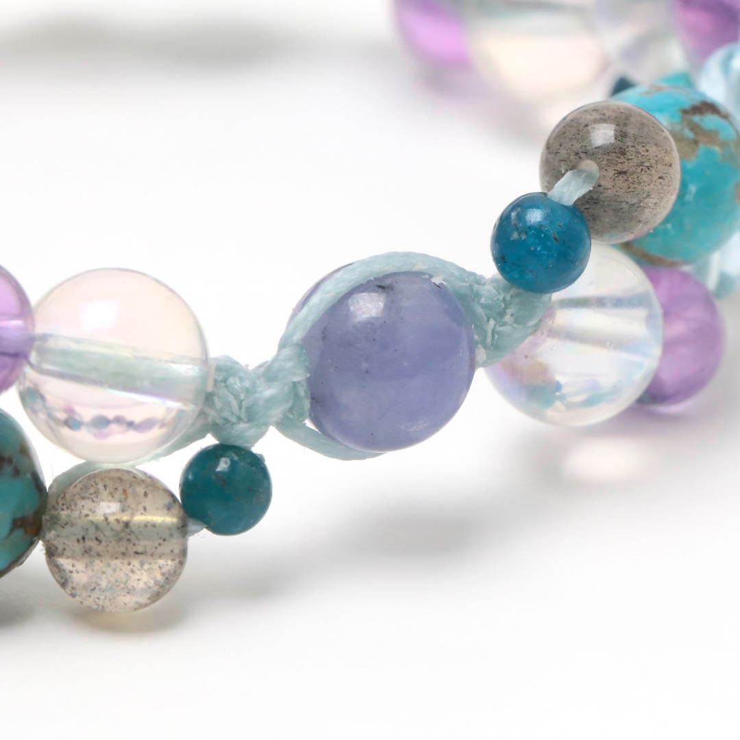 ▼使用されている石:タンザナイト / ターコイズ / ラブラドライト / ラベンダーアメジスト / アパタイト / ブルートパーズ / オーロラクォーツ / 水晶