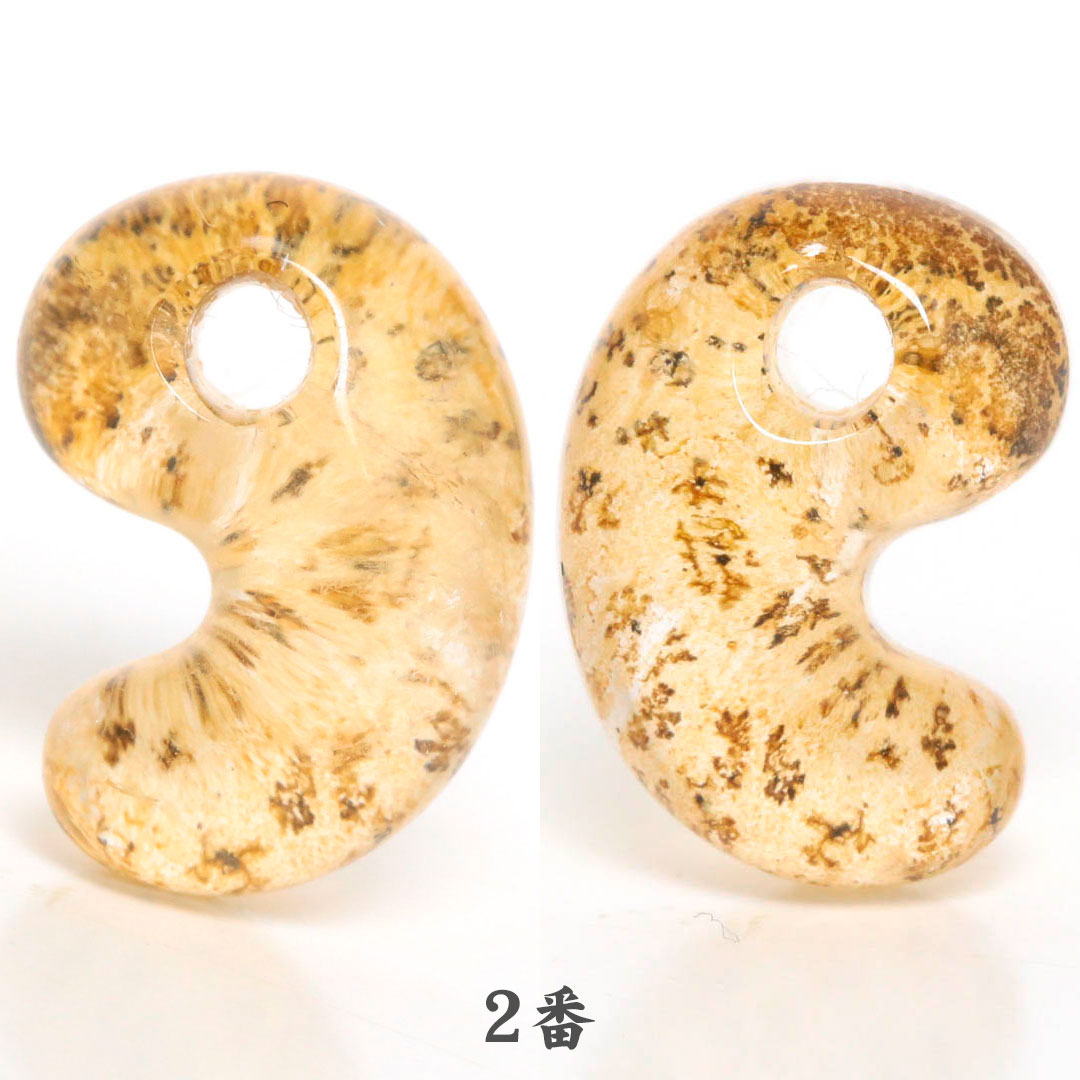 また、天然の石はデリケートなものですので、クラックや形状などで割れやすいもの、性質上光沢や色合いなどが変化する場合もございますので、取り扱いには十分ご注意の上、予めご了承ください。