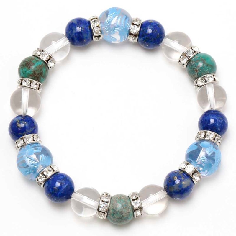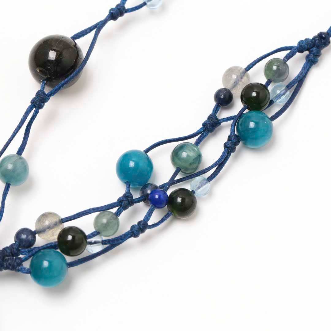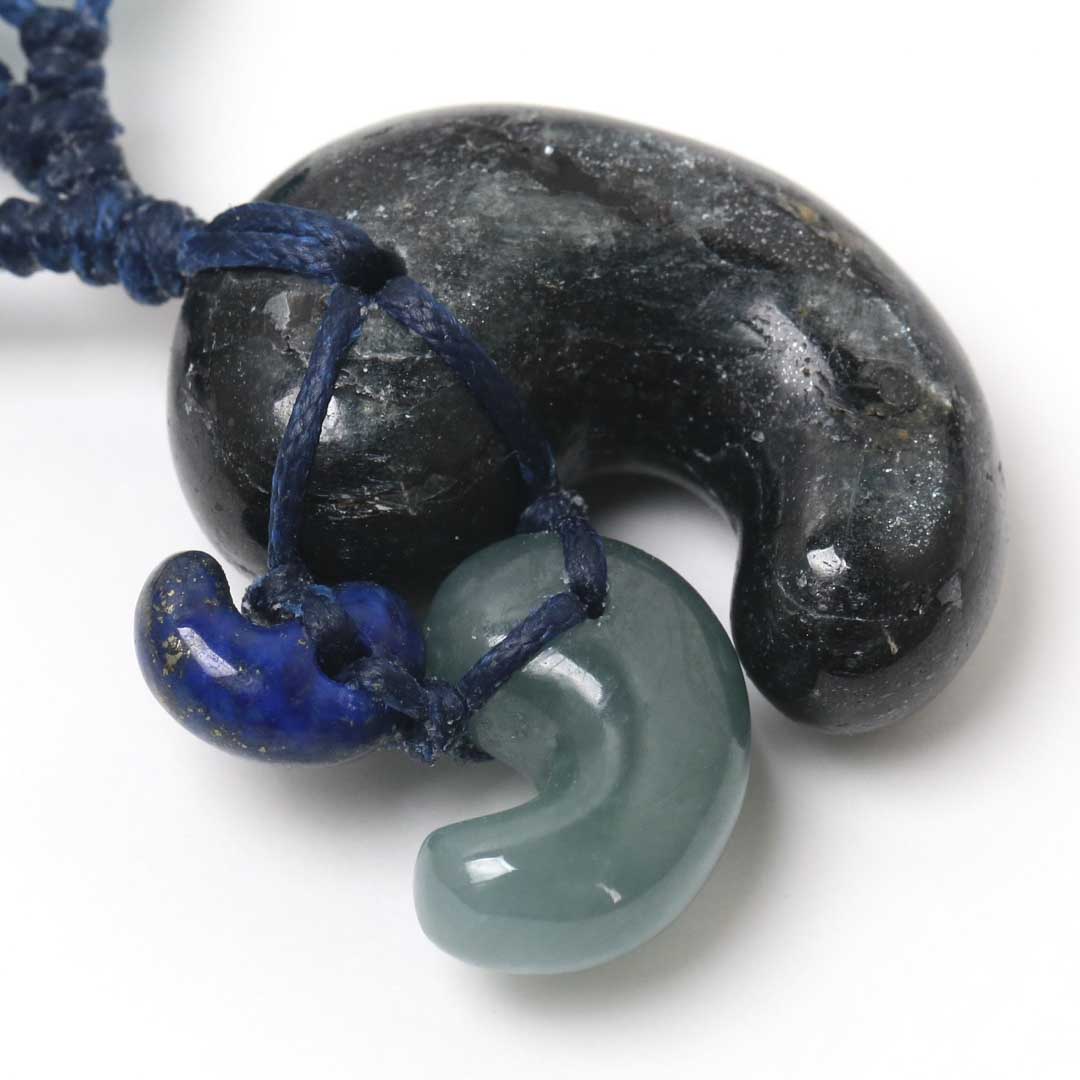 ▼使用されている石:カイヤナイト / ジェダイト (翡翠) / ラピスラズリ / アパタイト / グリーントルマリン / ラブラドライト / ブルートルマリン / クロムダイオプサイト / サファイア / ブルートパーズ / 黒水晶