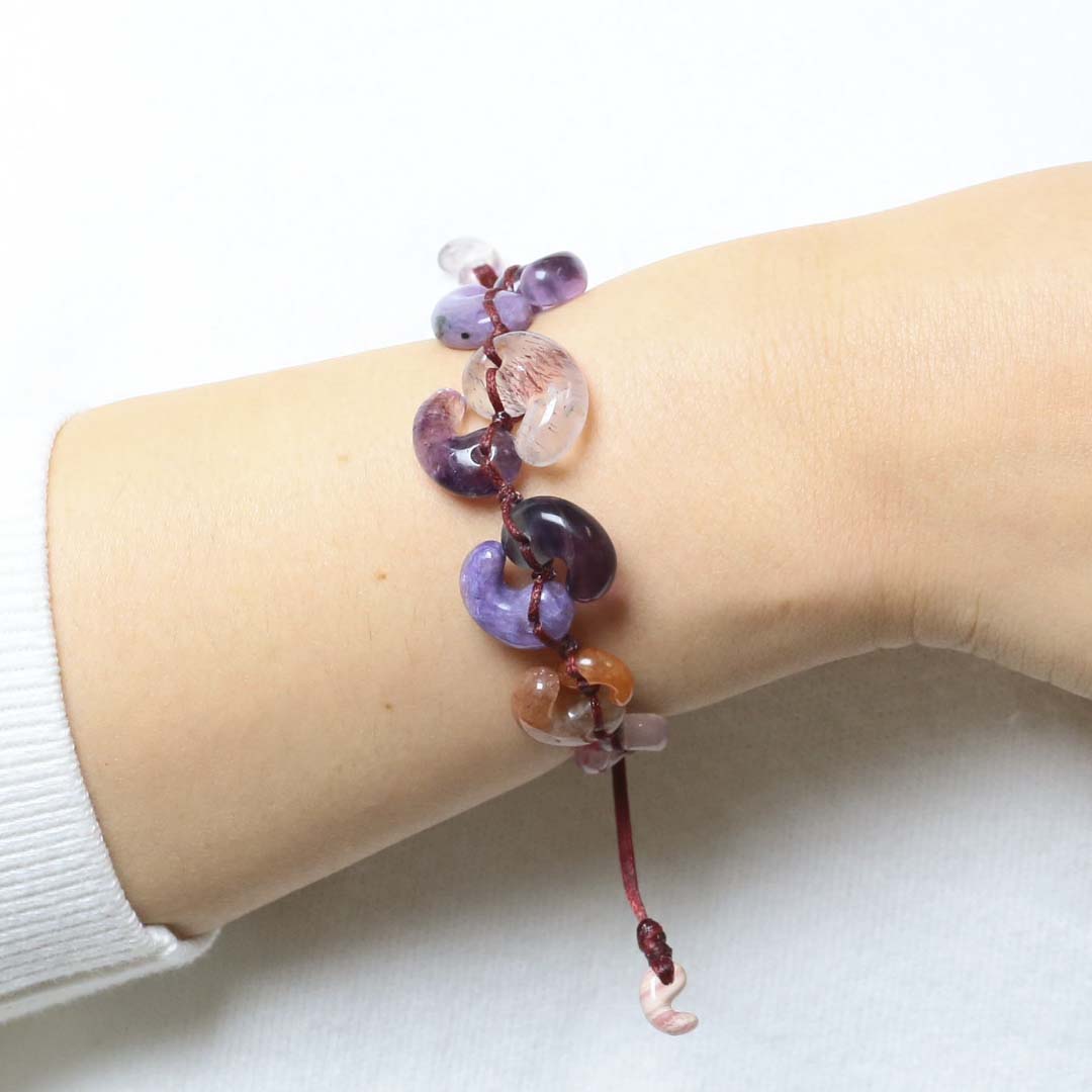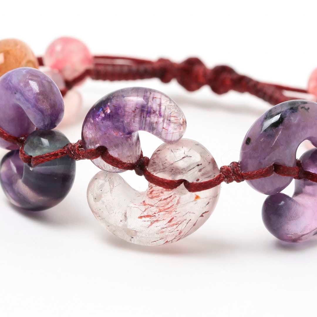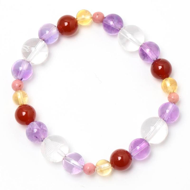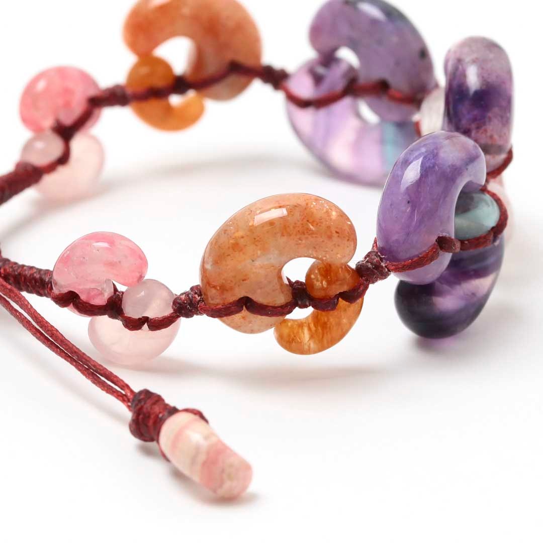 ▼使用されている石:アメジスト / エレスチャルクォーツ / チャロアイト / エンジェルシリカ / サンストーン / フローライト / オレンジアベンチュリン / ローズクォーツ / ロードナイト / 水晶 / ロードクロサイト