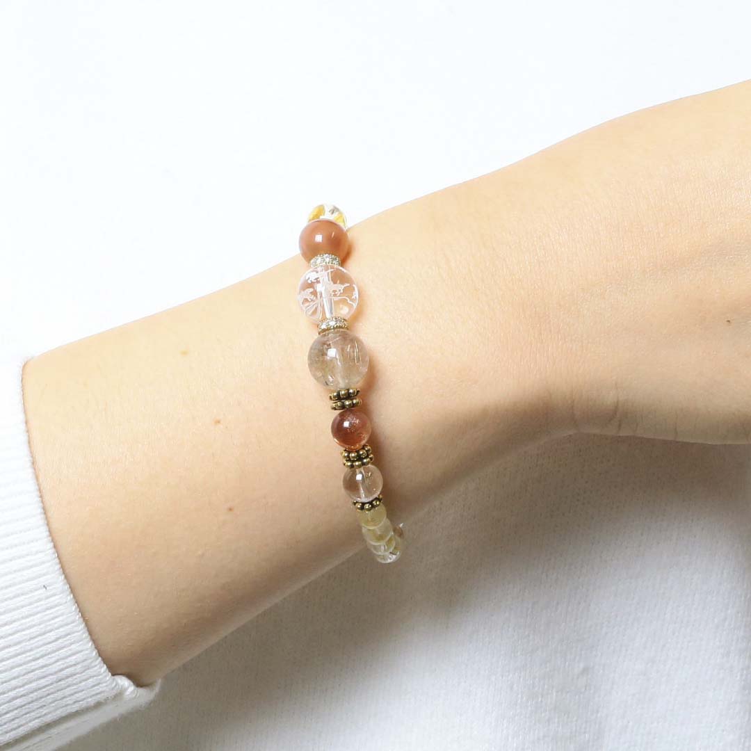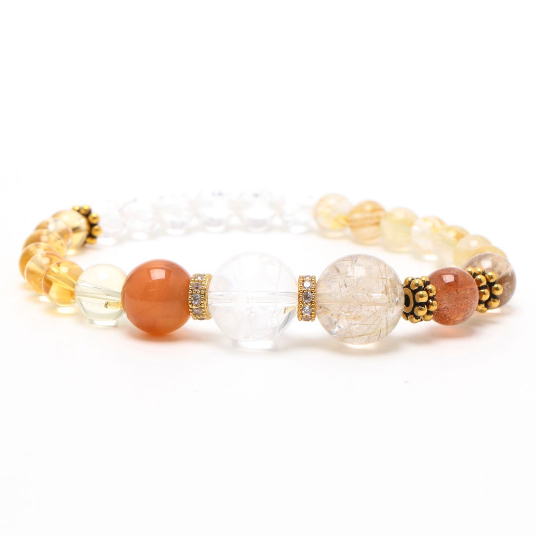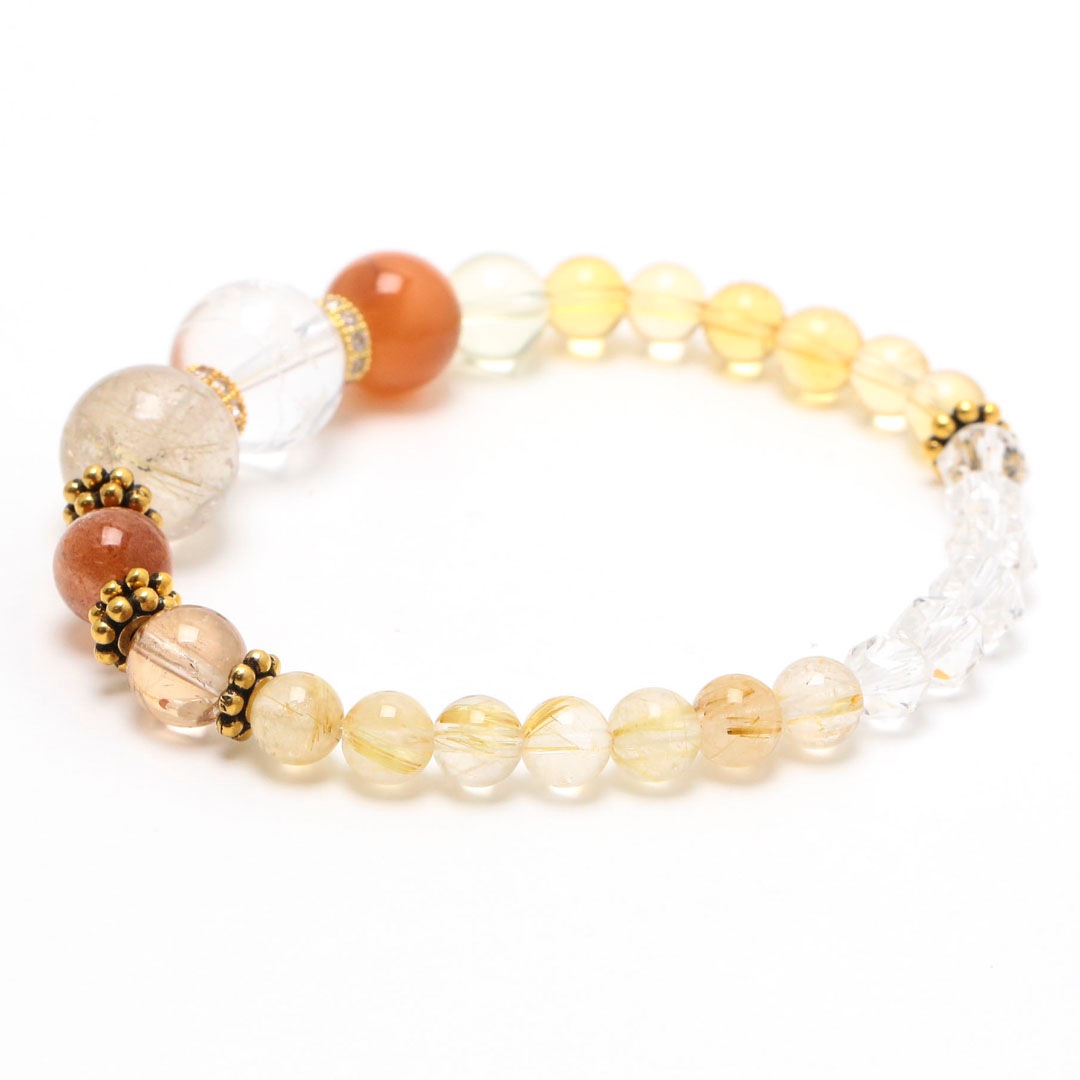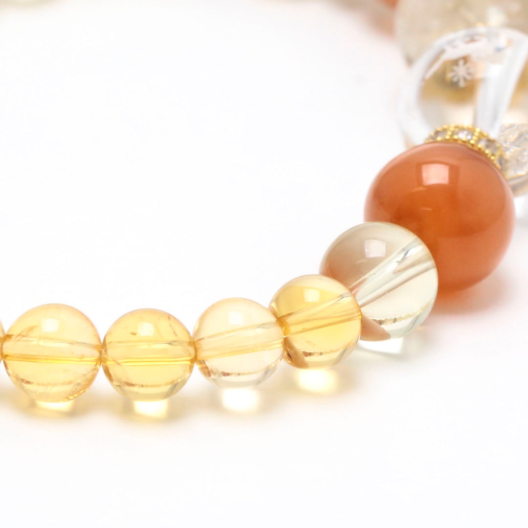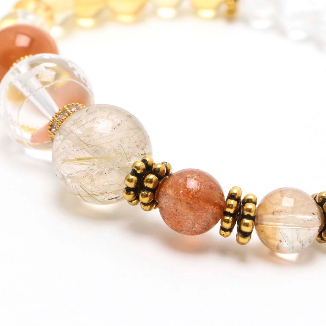 ▼使用されている石:水晶 / ルチルクォーツ / レインボーアゲート / レモンクォーツ / サンストーン / トパーズ / シトリン