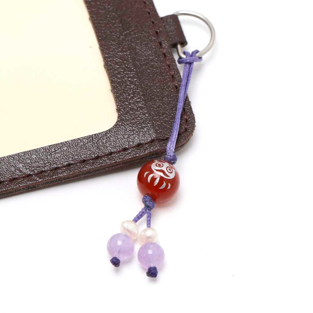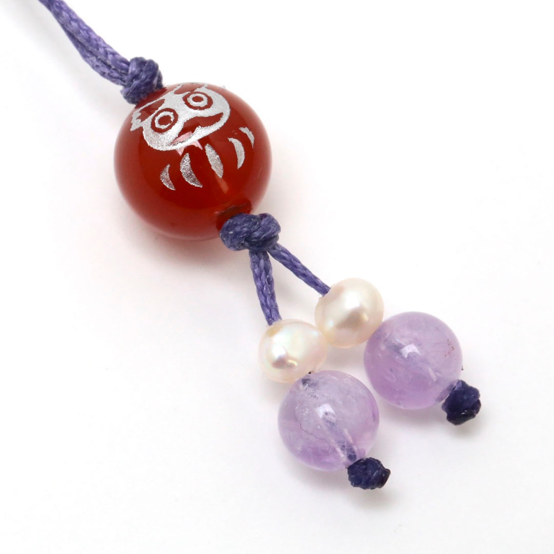 ▼使用されている石:ミルキーラベンダーアメジスト / 淡水パール / 赤めのう / だるま