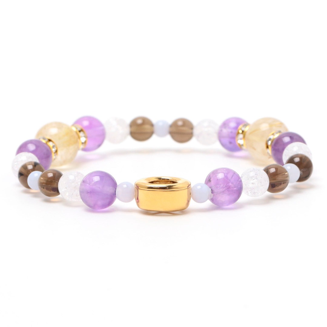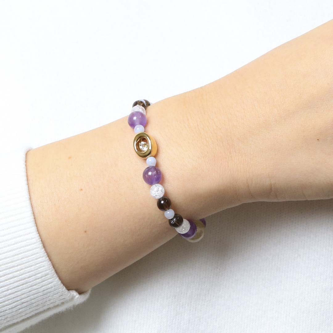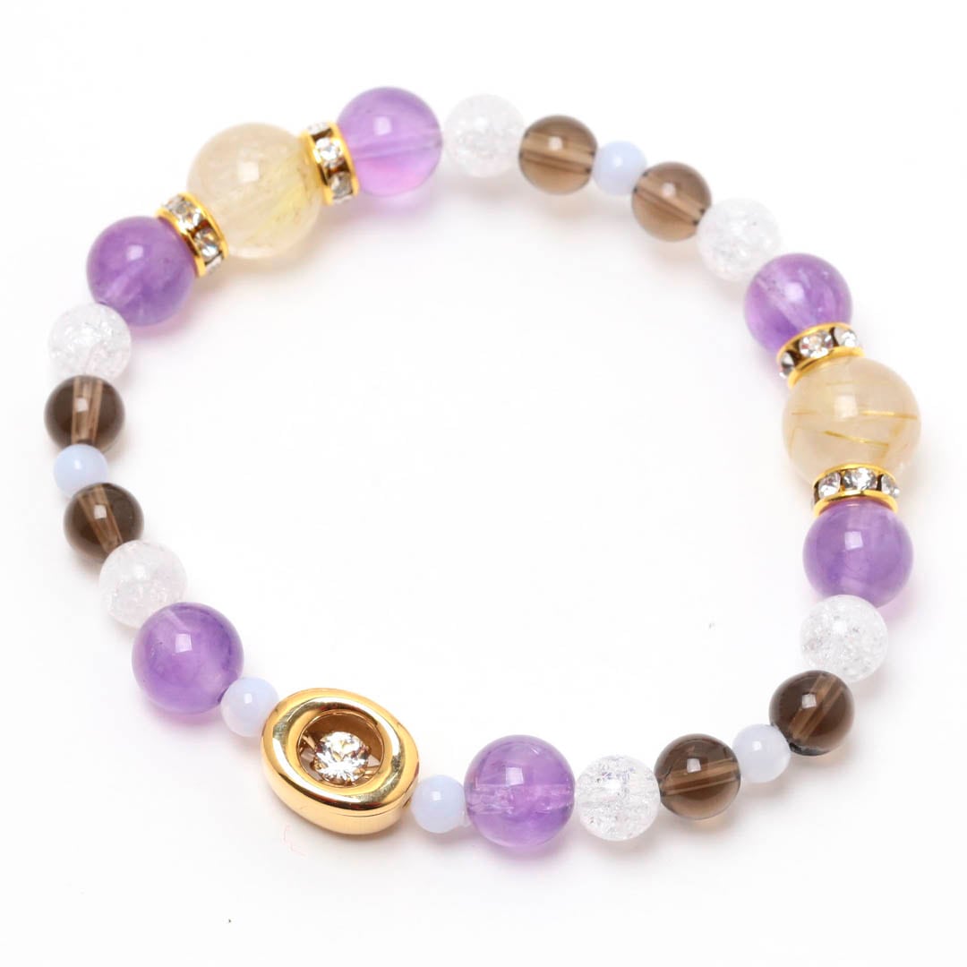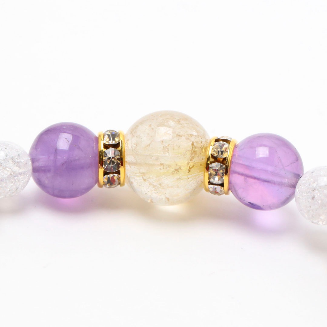 ▼使用されている石:ラベンダーアメジスト / スモーキークォーツ / ブルーレース / ルチルクォーツ / クラッククォーツ