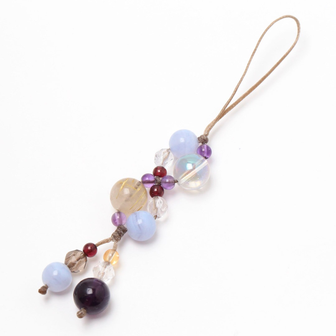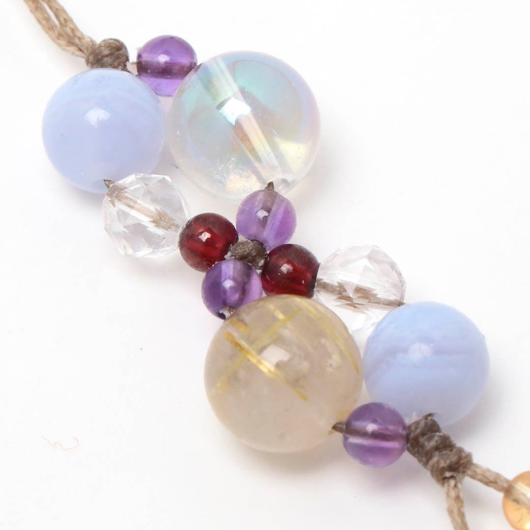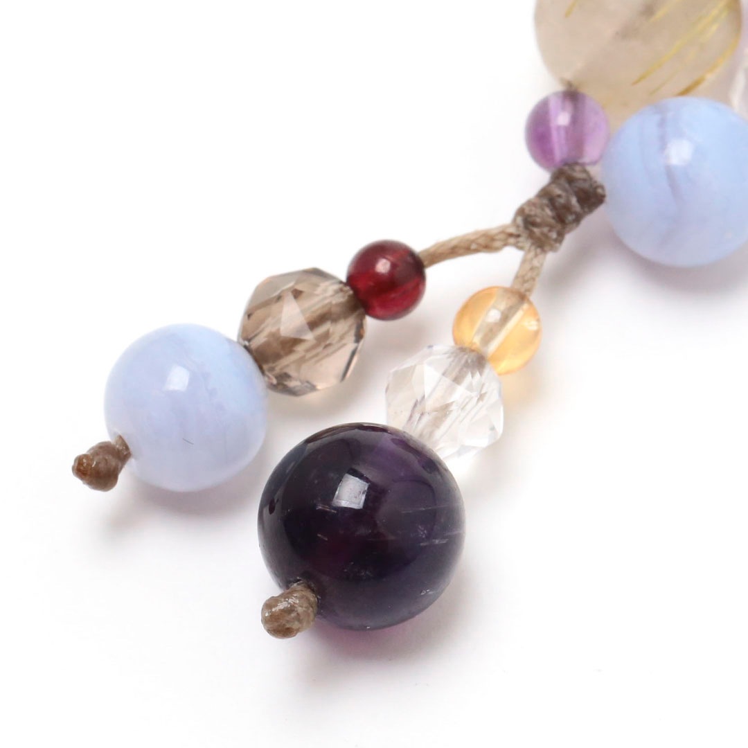 ▼使用されている石:オーロラクォーツ / ルチルクォーツ / 水晶 / アメジスト / ブルーレース / スモーキークォーツ / ラベンダーアメジスト / ガーネット / ゴールデンオーラ