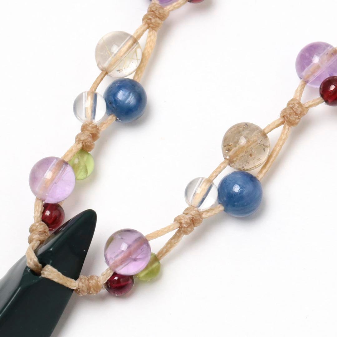 ▼使用されている石:出雲石 / ラベンダーアメジスト / カイヤナイト / ゴールデンルチルクォーツ / ペリドット / 水晶 / ガーネット