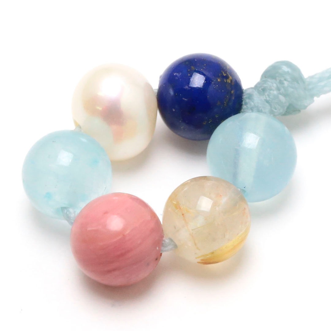 ▼使用されている石:ルチルクォーツ / 淡水パール / アクアマリン / ラピスラズリ / ピーモンタイト・シスト