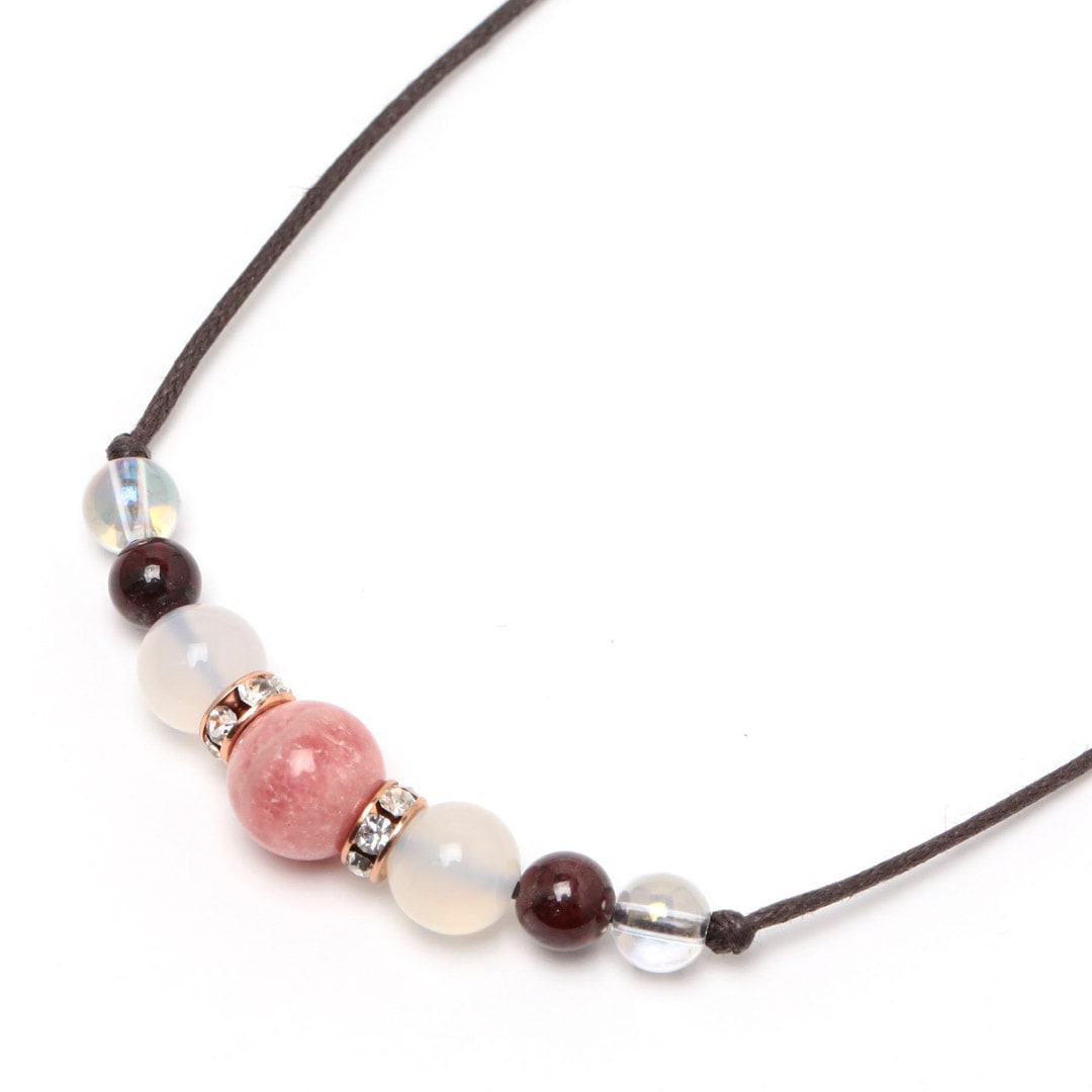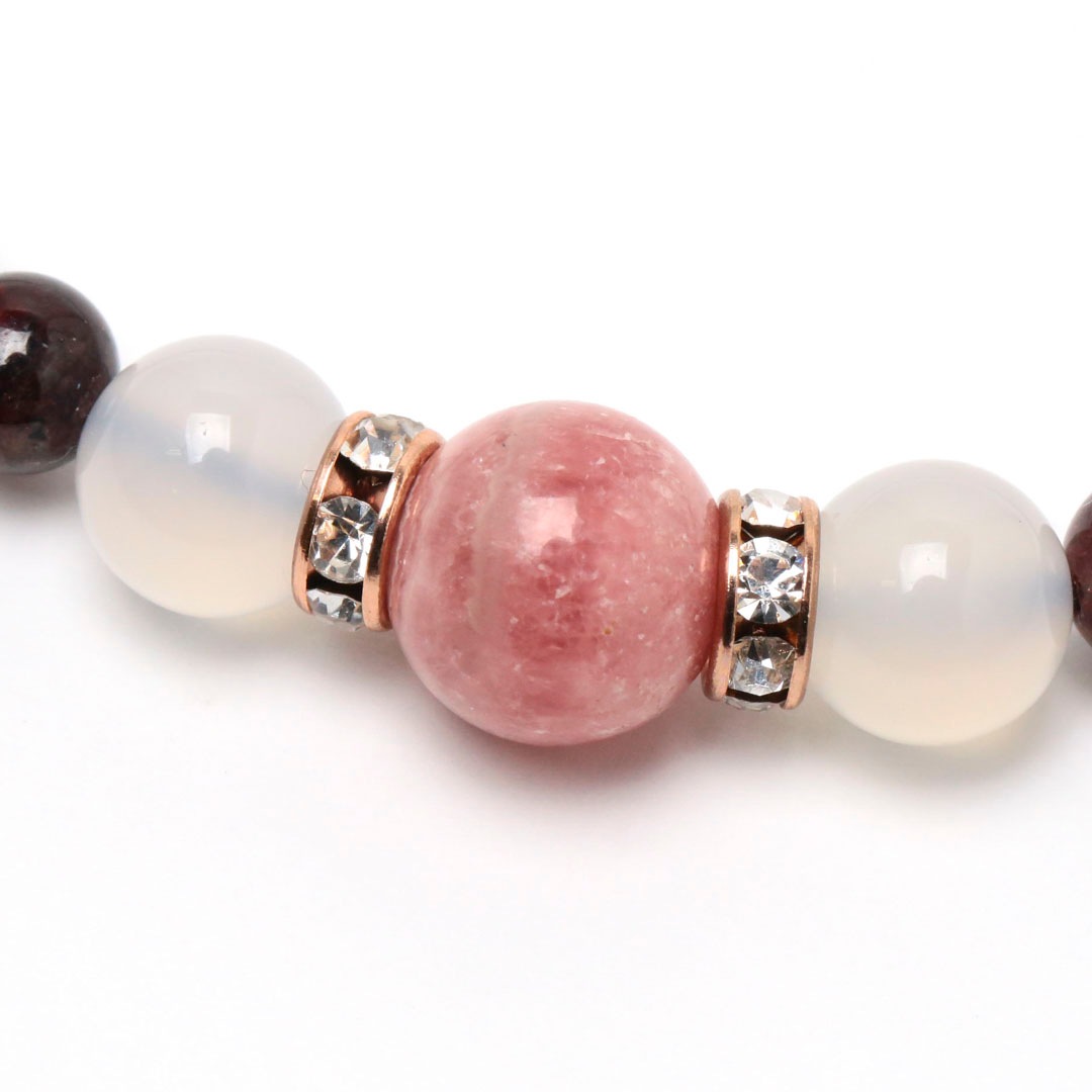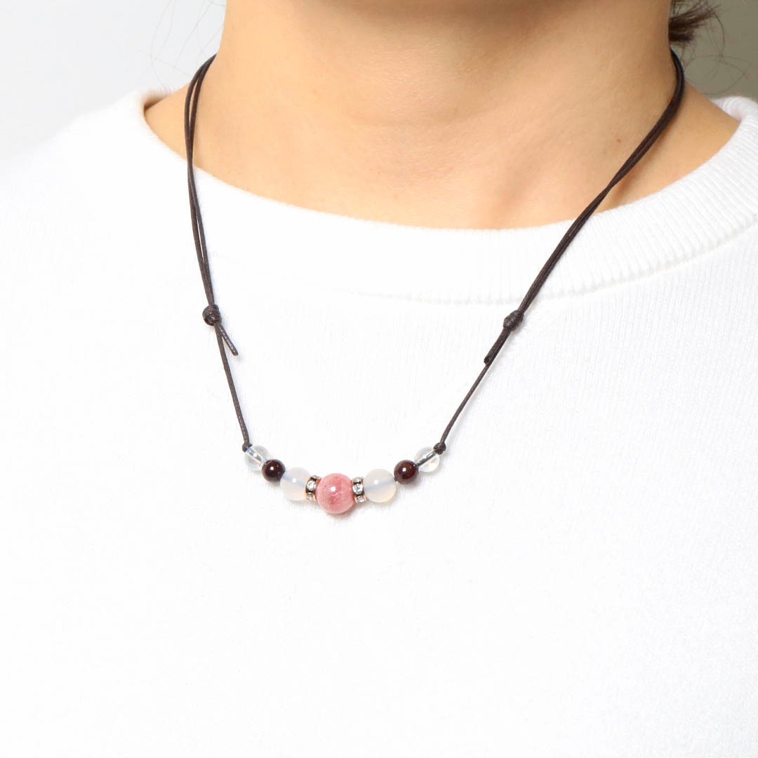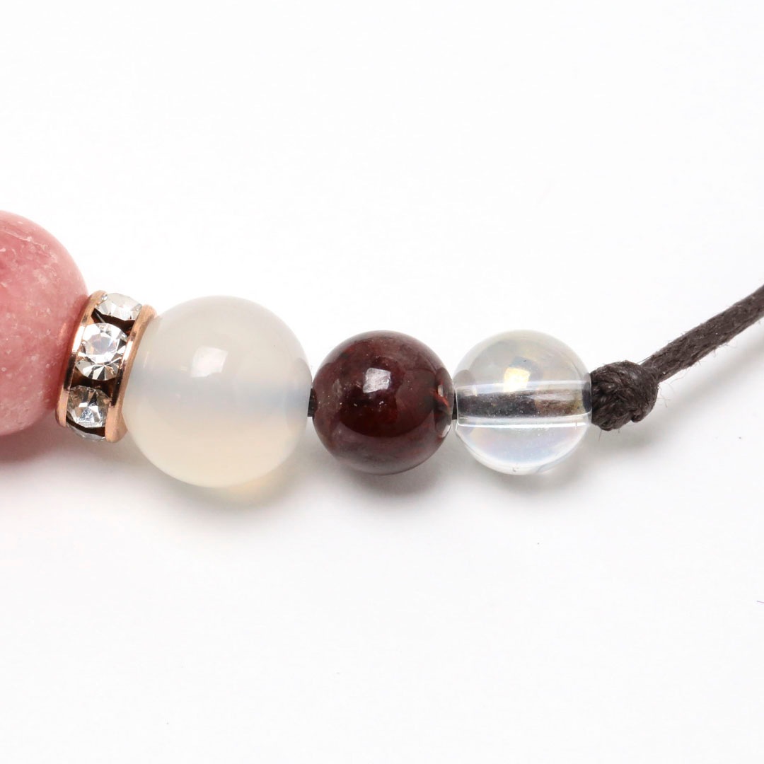 ▼使用されている石:ロードクロサイト / ガーネット / 白めのう / オーロラクォーツ